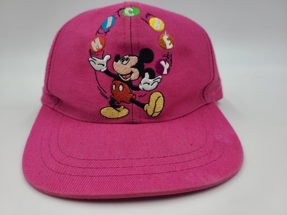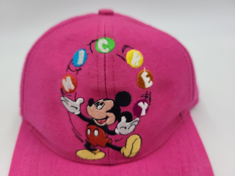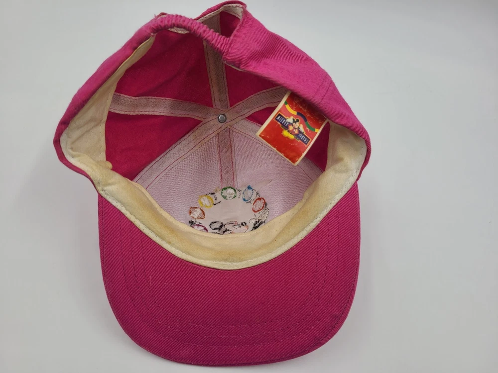 Has some scuffs/stains on the brim, side, back, and underneath the brim as seen in photos. Also has some writing on the tag. Vintage Toddler Mickey Mouse One Size Stretch Hat Cap Disney Kid Boys Girls Pink. EACH ADDITIONAL HAT PURCHASED IS ONLY $1 ADDED SHIPPING!