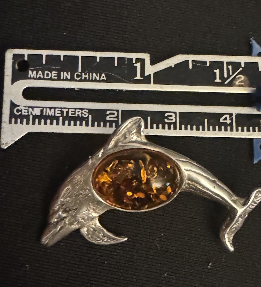 This stunning vintage brooch is a true treasure! The delicate 10k gold dolphin design paired with the rich Baltic amber jelly belly creates a gorgeous retro statement piece. The craftsmanship is impeccable, and the rare combination of materials makes it a standout for collectors. It’s elegant, unique, and full of mid-century charm—perfect for adding a touch of timeless glamour to any outfit. A must-have for lovers of MCM jewelry!