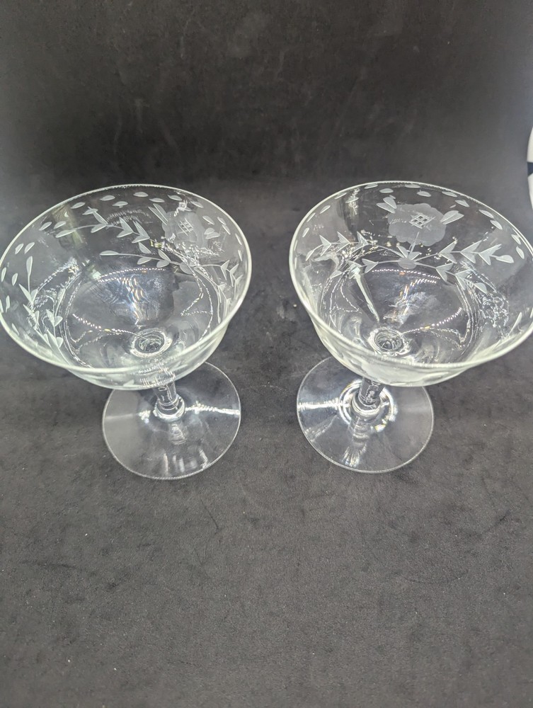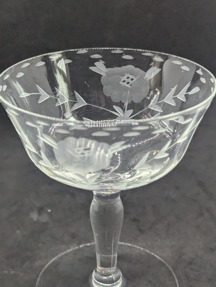 Vintage tall sherbet/coupe glass measuring 4.75 x 3.75" with a 8oz capacity. No chips cracks or scratches. Visit my store for more vintage glassware, fine china, barware and lighting!