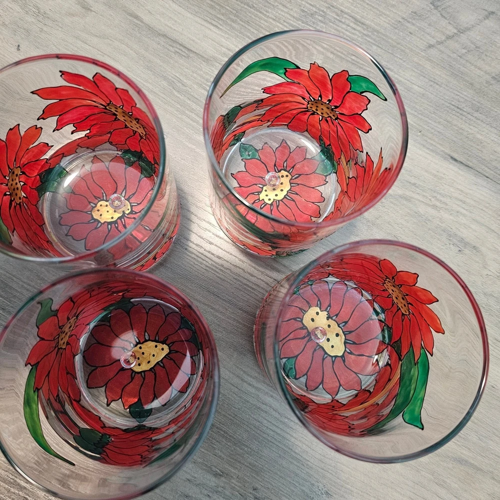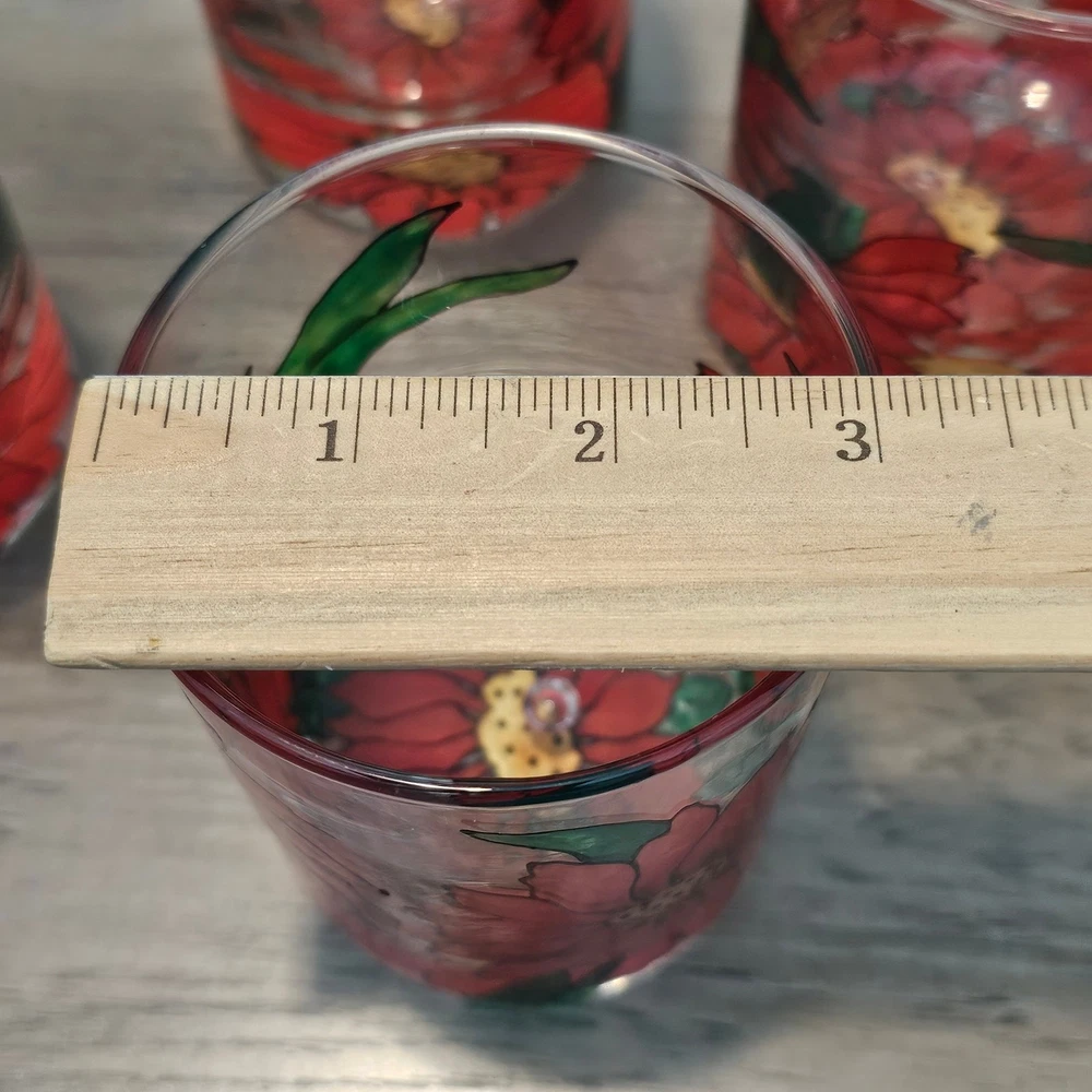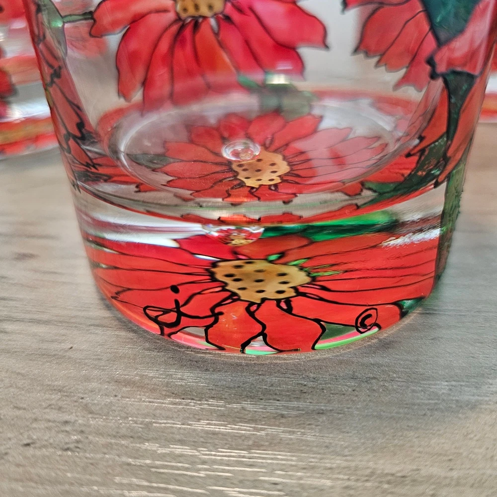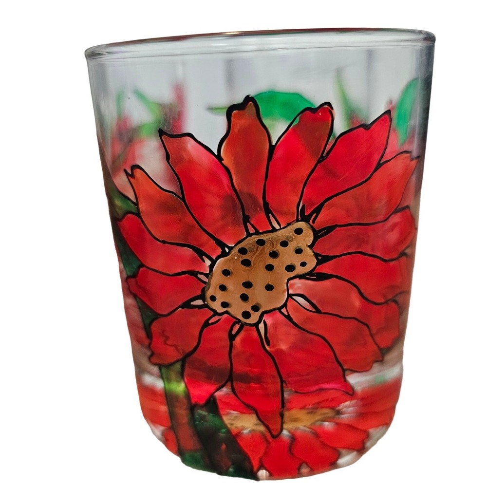 Vintage Hand Painted Poinsettia Glasses Set of 4 Drinking Glasses Mid Century -Excellent condition -Clear glass with hand-painted flowers all over, even on the very bottom -Flowers, Christmas, holiday, collectibles, glassware, MCM -Makers mark is signed on bottom front -Whiskey glass cup Measurements in photos. Same day / next day shipping Offers accepted Like for price drops and deals Bundle 2 items or more and save! Thank you! 4 lb