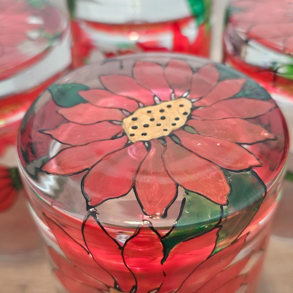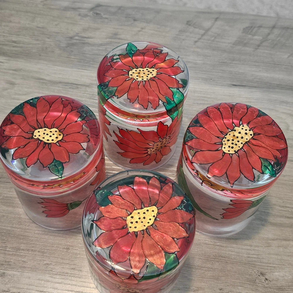 These vintage poinsettia glasses are absolutely stunning—the hand-painted detail is so delicate and festive! The set is in perfect condition, with intricate florals even on the bottom. They feel sturdy and have a lovely mid-century charm. Great for holiday gatherings or as a collector’s piece. Fast shipping too—highly recommend!