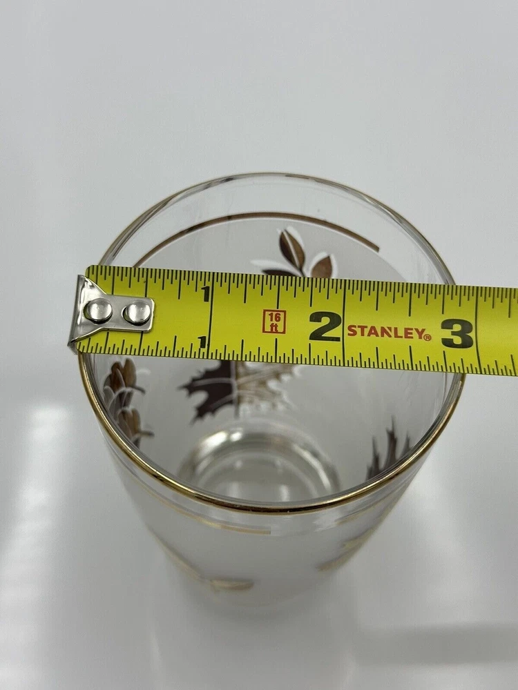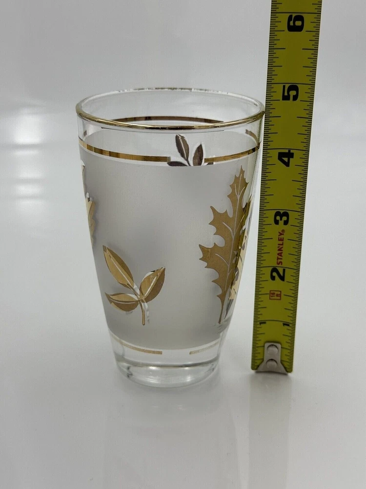 Vtg MCM Libbey Frosted Gold Leaf Golden Foliage Glasses 12 Oz Set Of (7) 4.5” Great condition with some of the gold rubbed off. I have taken pictures of each spot/place.