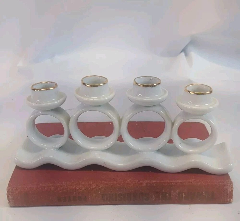 Add a touch of vintage charm to your home decor with this MCM Old Hollywood Ceramic Candle Holder/Napkin Holder. Crafted from high-quality ceramic, this candle holder is perfect for creating an elegant and romantic atmosphere at dinner parties or special occasions. The sleek design and vintage feel make it a great addition to any collection of decorative collectibles. Ideal for holding your favorite scented candle or as a napkin holder, this ceramic candle holder is both functional and stylish. Its unique design and quality material make it a standout piece that will add a touch of sophistication to any room. Perfect for collectors and those who appreciate vintage decor, this candle holder is a must-have for any home.