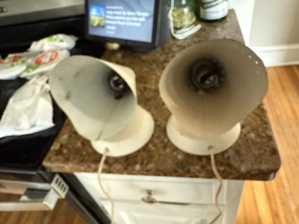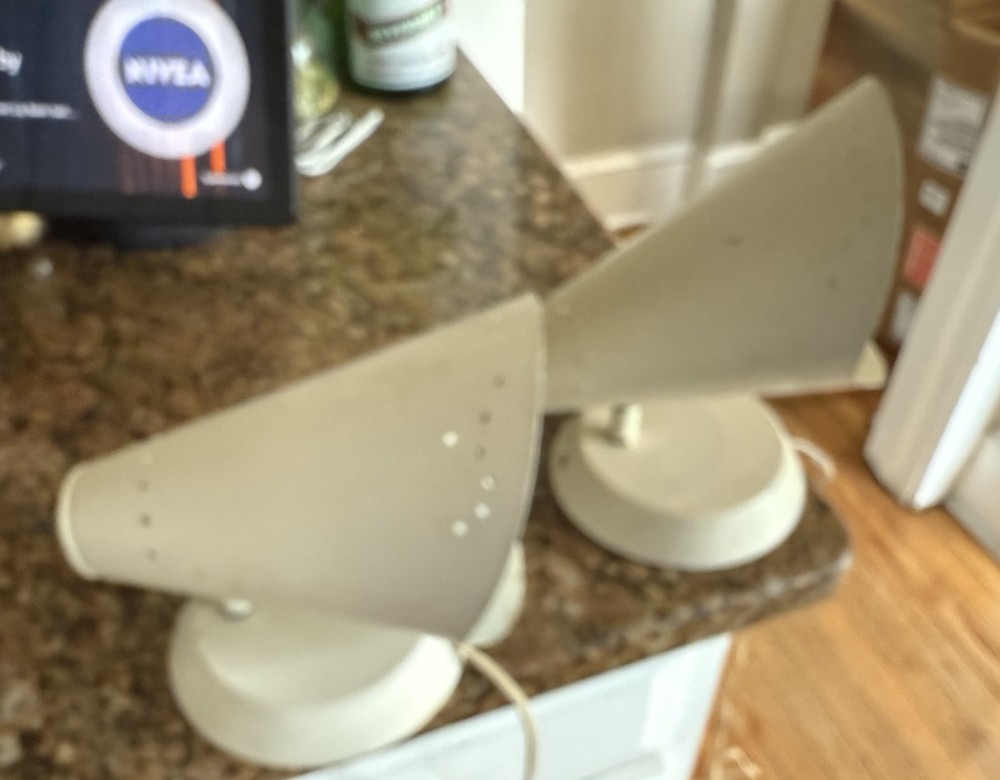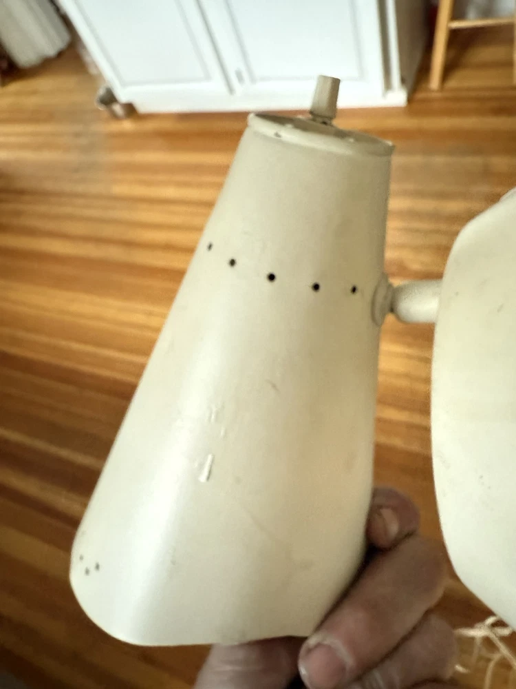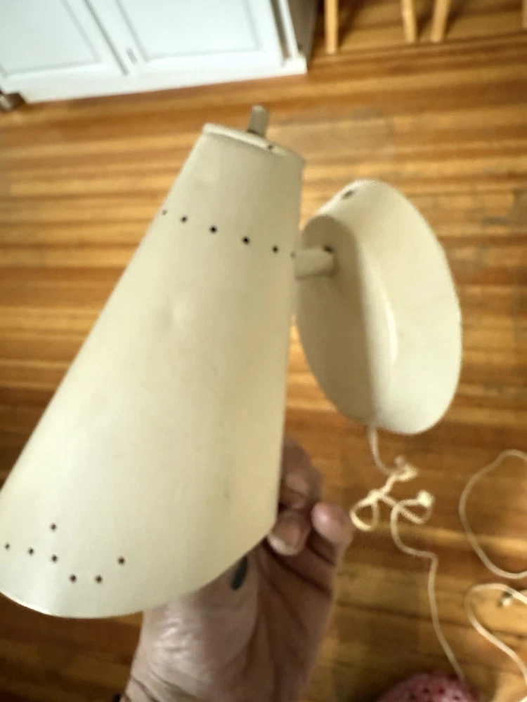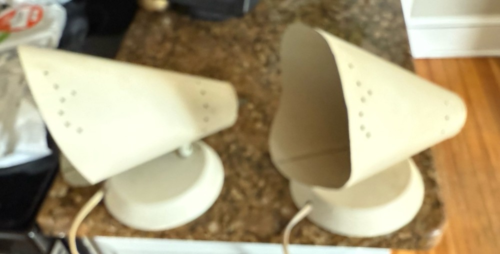 Vintage Mid-Century Modern Whitmer Corded Cone Wall Sconce Pair with White Finish