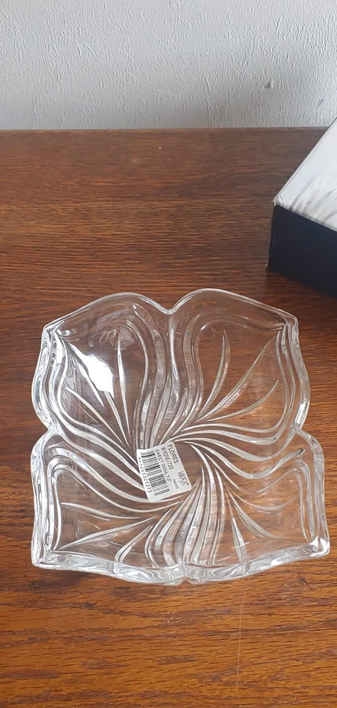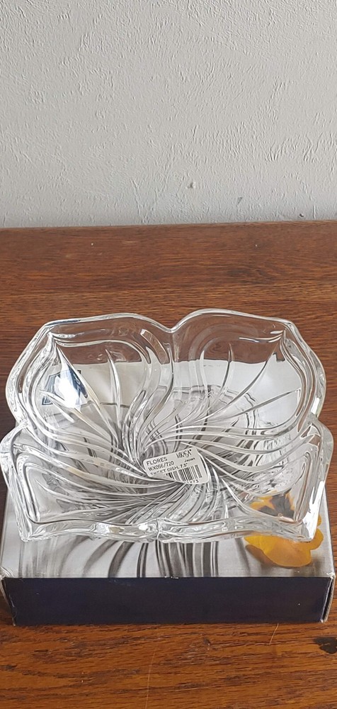 Production Style:Cut GlassTheme:FlowerFinish:GlossyStyle:Mid-Century ModernTime Period Manufactured:unknownBackstamp:PrintedNumber of Compartments:1Product Line:CrystalItem Diameter:7.5"Production Technique:Cut GlassShape:SquareColor:ClearOriginal/Licensed Reproduction:OriginalModel:Trinket BowlNumber of Items in Set:1Handmade:NoPattern:FloralMaterial:Crystal, GlassType:Candy DishFeatures:DecorativeCountry/Region of Manufacture:JapanVintage:YesPackaging:BoxedBrand:MikasaCustom Bundle:No