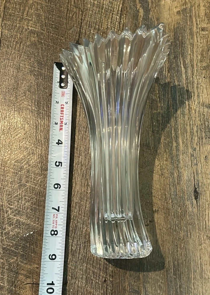 Occasion:All OccasionsColor:ClearSize:MediumCountry/Region of Manufacture:JapanItem Height:8 1/4 inBrand:MikasaShape:CurvedStyle:1980sOriginal/Reproduction:OriginalNumber in Pack:1Type:VaseFeatures:CrystalsTime Period Manufactured:1980-1989Material:CrystalEra:Late 20th Century (1970-1999)