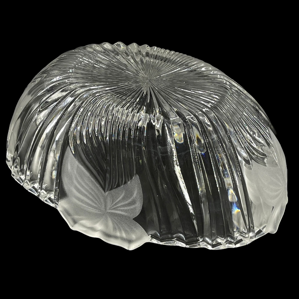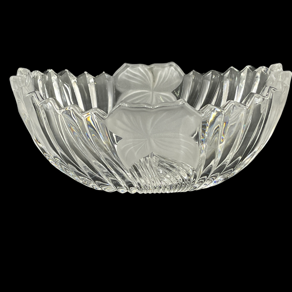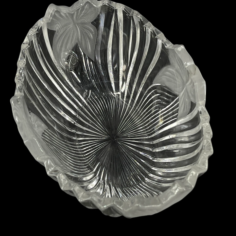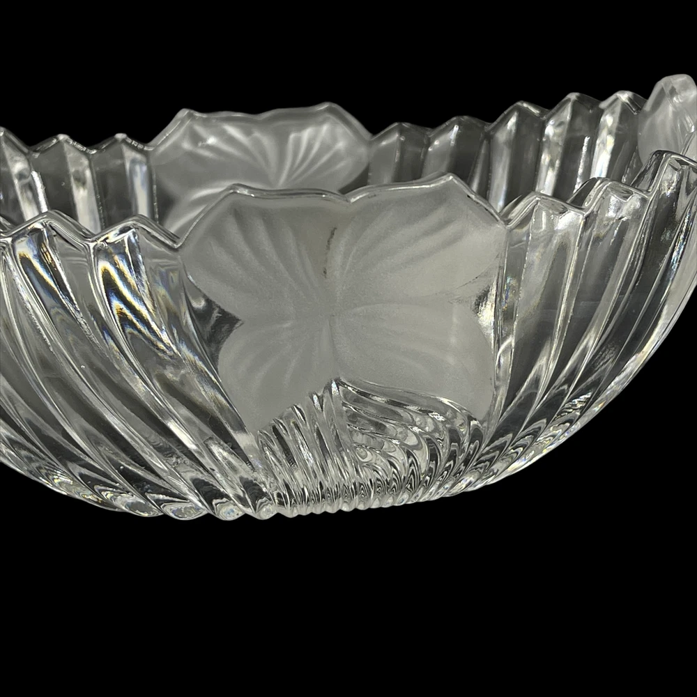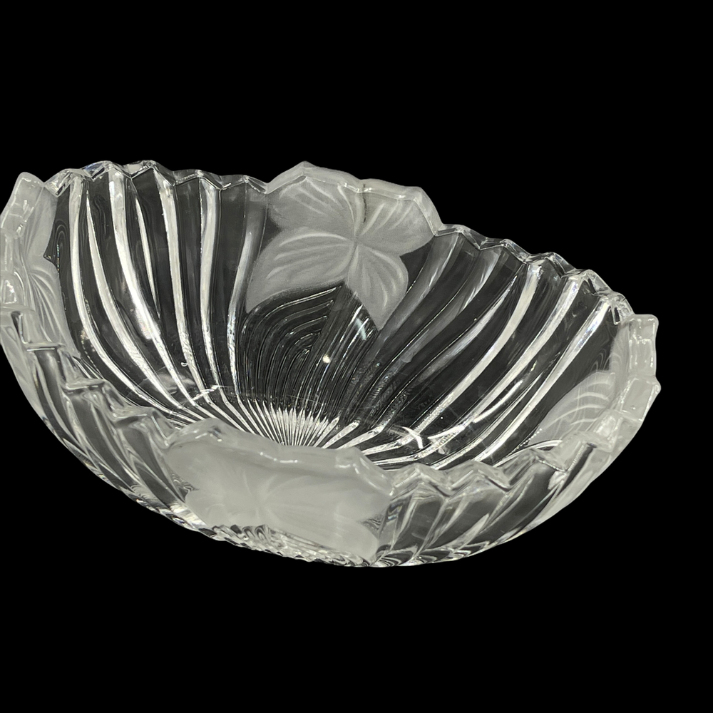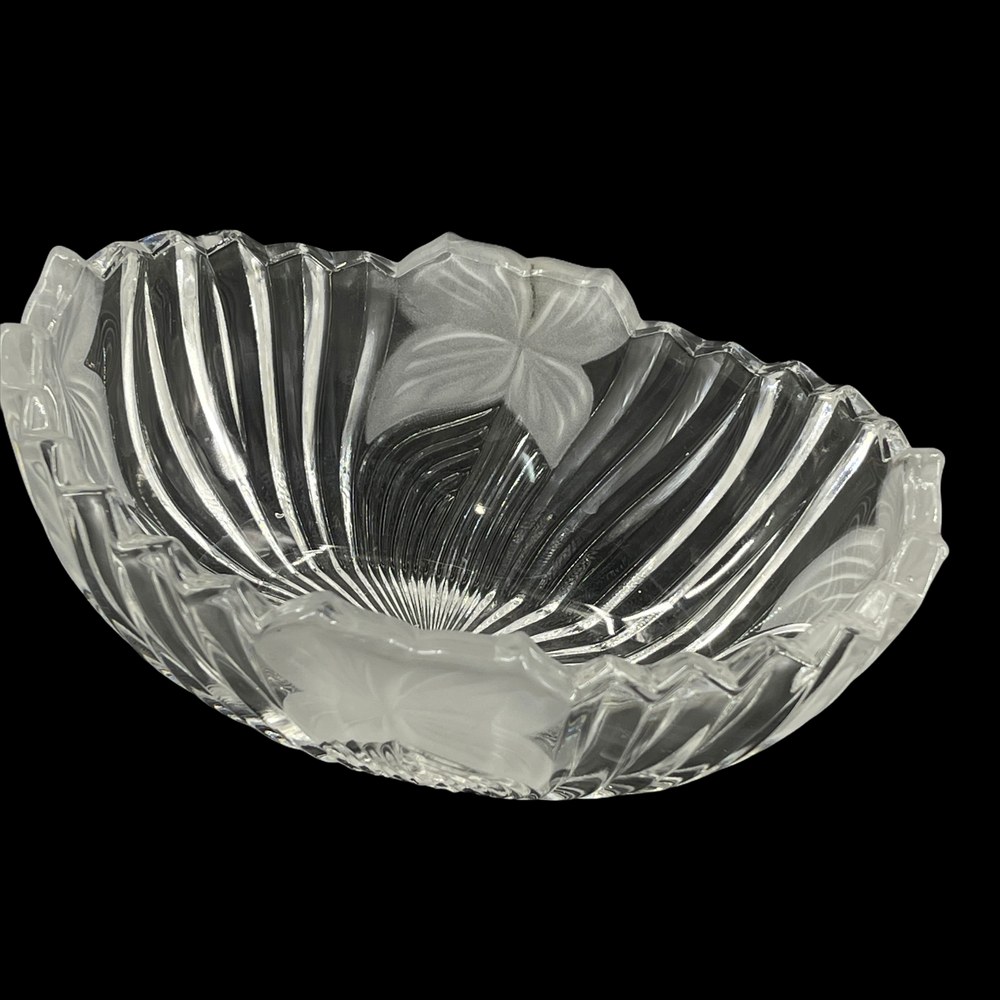 Vintage Mikasa Ribbed Glass Crystal Clear Frosted Flowers Oval Candy Nut Bowl 5" x 7" and 2 3/4" deep.