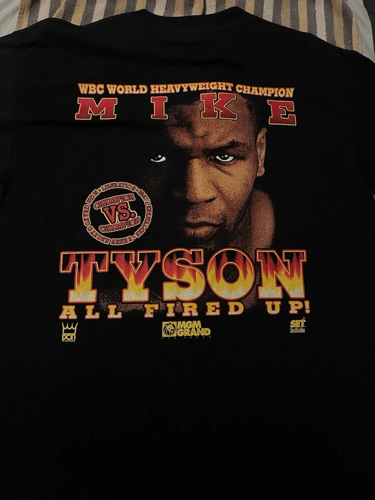 Vintage Mike Tyson Rap Tee MGM GRAND 1996 All Fired Up Seldon VS Tyson XL RARE. Condition is Pre-owned. Shipped with USPS Ground Advantage.