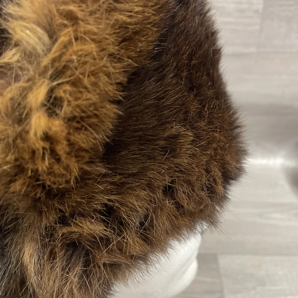 This Vintage Mink Fur Trapper Hat is a classic Russian Ushanka in a stylish brown colour. Made from luxurious fur, this one-size hat is perfect for women looking to add a touch of sophistication to their winter outfits. The trapper hat style gives it a unique and timeless appeal, making it a must-have accessory for any wardrobe. This is in great condition Size small