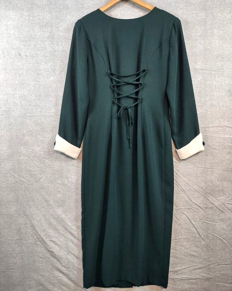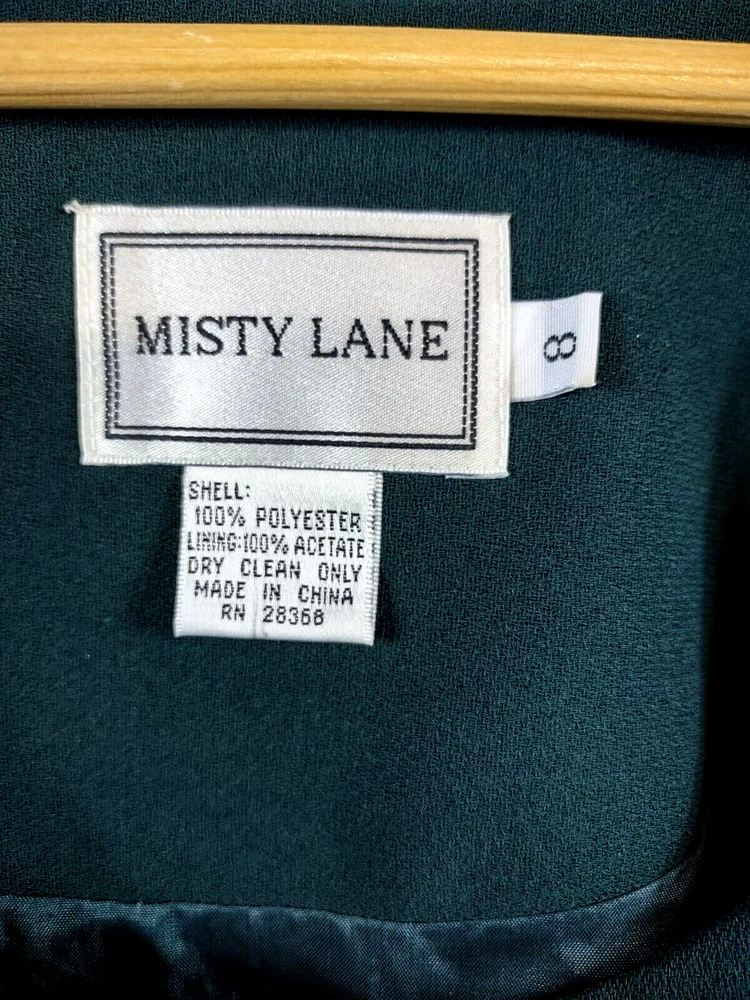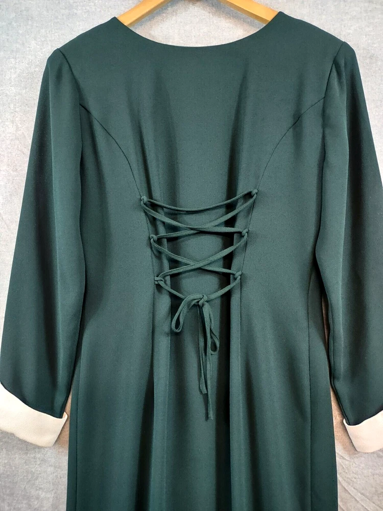 Misty Lane Dress Womens 8 Green Elegant Vintage Maxi Button Front Lace Up Back Long Sleeve Ivory Button Cuff Classic Formal Wedding Long Dress Shoulder Pads Vintage Misty Lane Dress Womens 8 Green Ivory Long Formal Wedding Corset Back Button Up Long Cuff Sleeve Shoulder Pads Elegant Classic 49" Length shoulder to hem 17 3/4" Underarm to underarm 23" Sleeve length shoulder to cuff CONDITION - Excellent pre-owned condition. All items are cleaned per Ebay standards. Not spot treated. See the photo gallery to view this items measurements and condition. SHIPPED - USPS Ground Advantage unless item weight requires priority mail. RETURNS accepted, must be returned within 30 days in original condition to receive a full refund. SHIPPING AND HANDLING We ship all packages within five business days Monday through Friday except Holidays. Consolidated shipping is available for multiple purchases. Thank you for helping our planet and buying previously owned and loved items. I am grateful for your business. Enjoy! Check out our eBay store and follow us. There are new listings daily. 10BB-4458 Disclaimer: While we make every effort to capture the most accurate depiction of every item when photographing, colors may vary from screen display to in person therefore we cannot guarantee "exact shade" on any item. Message us if you have questions.