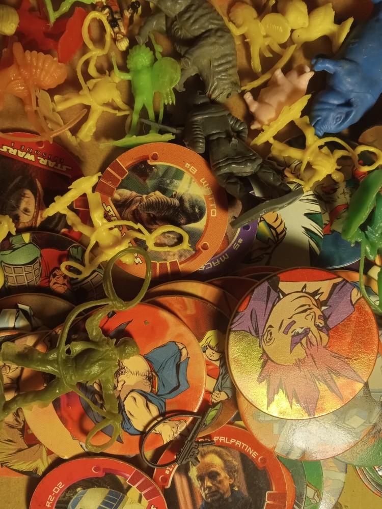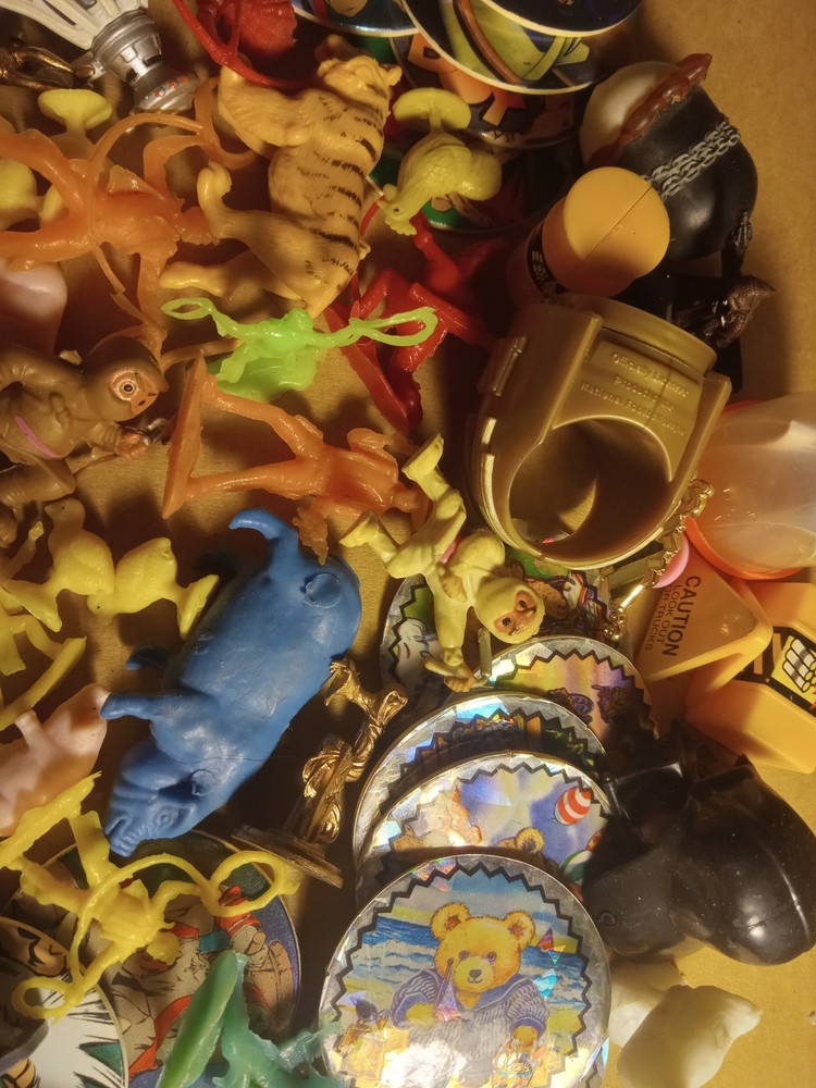 Vintage Mixed Minitures Toy Lot Pogs Animals Plastic Star Wars Junk Random