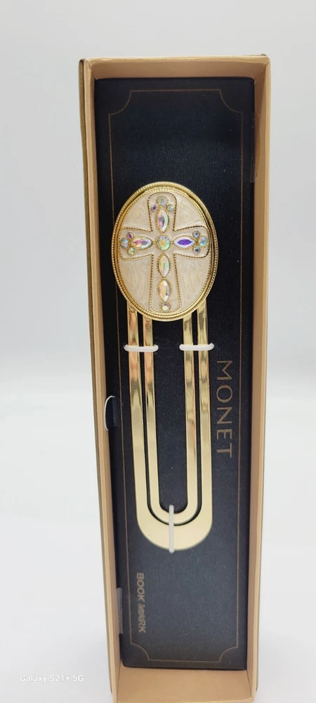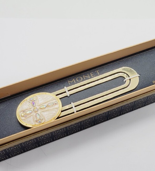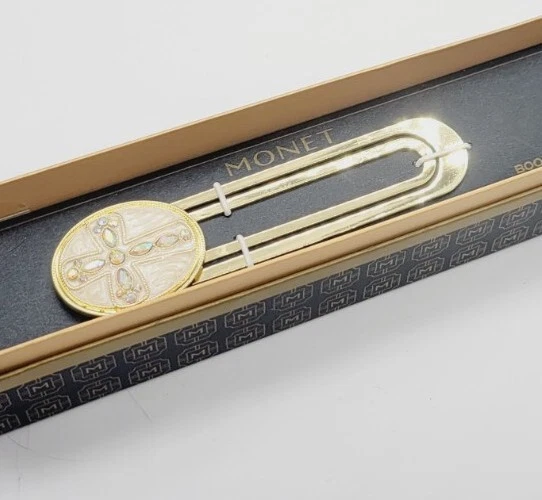 HomeVintage Monet Cross Enamel Gold Tone Crystals Paperclip Bookmark NIB