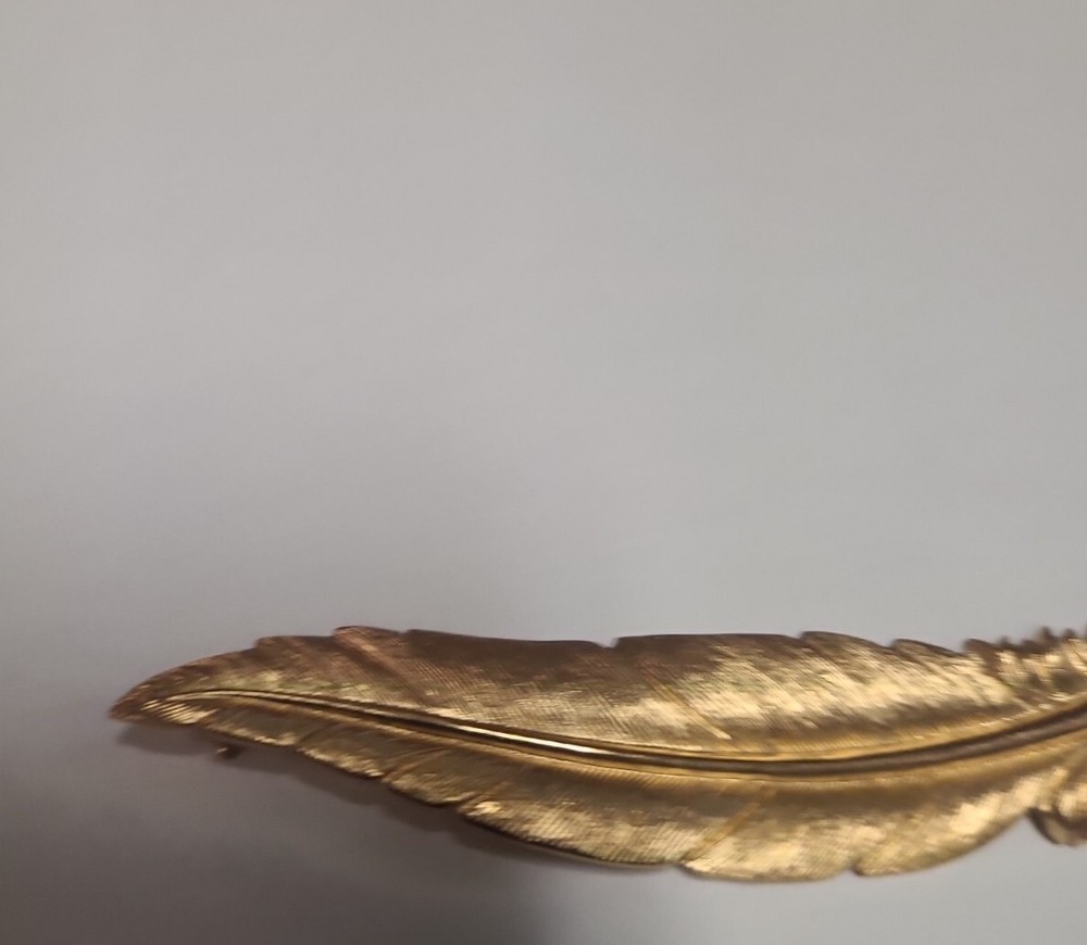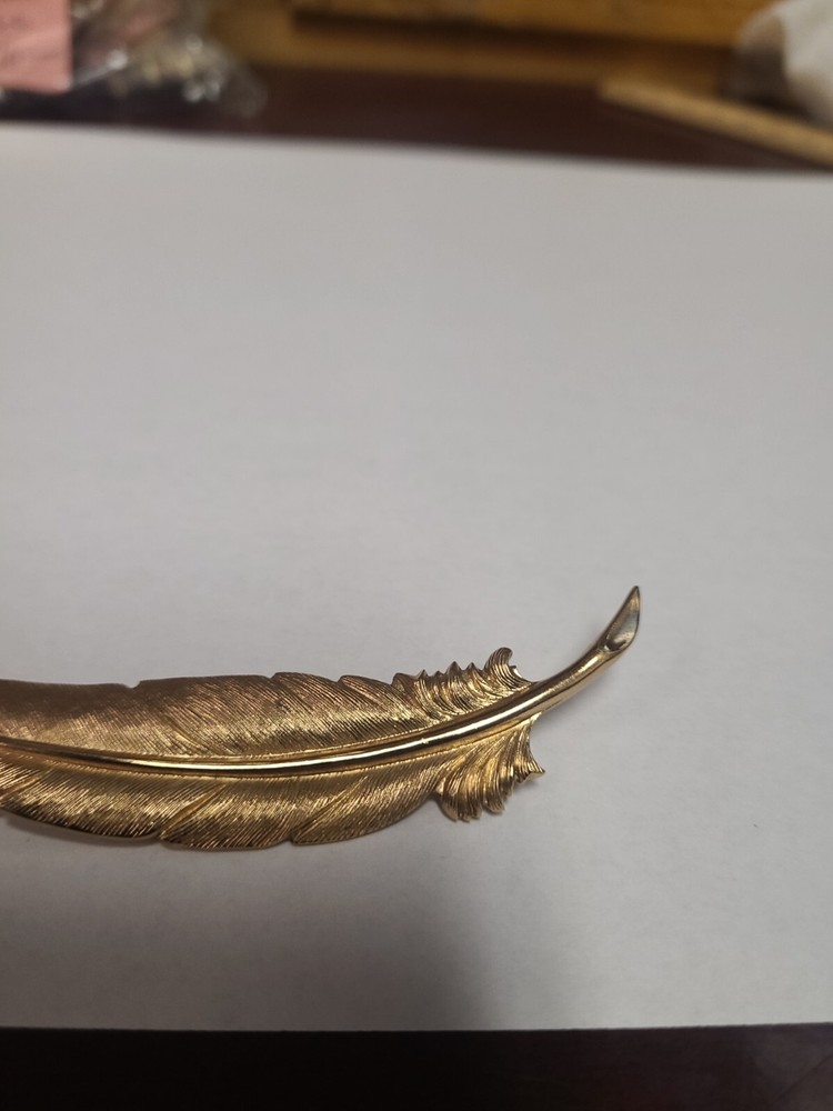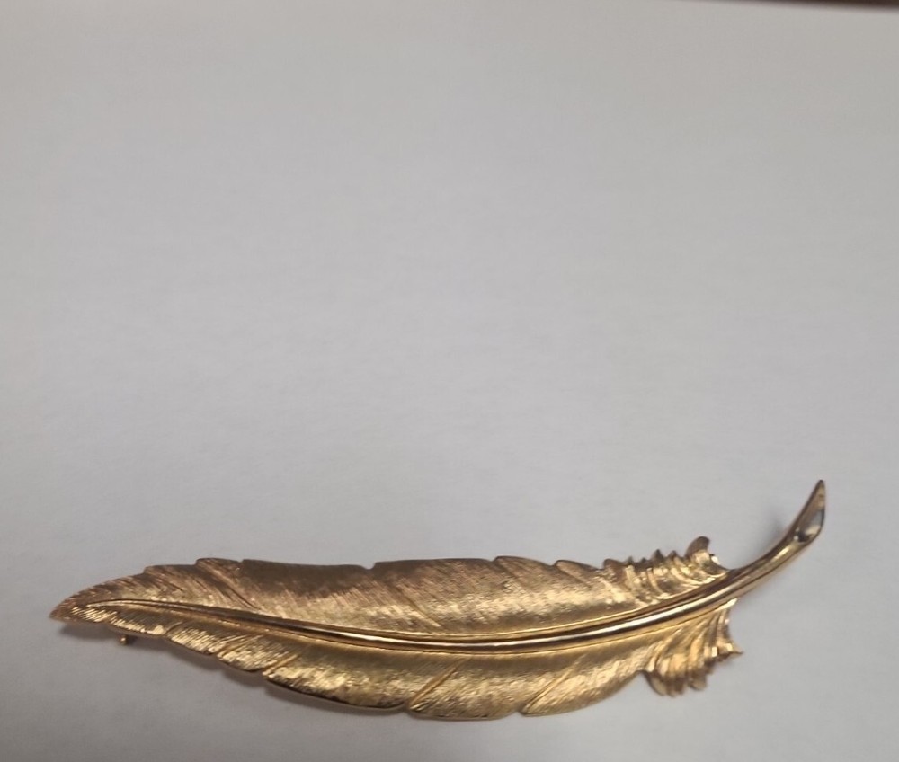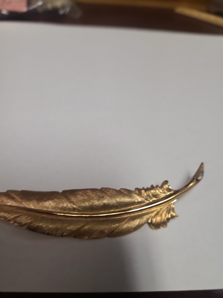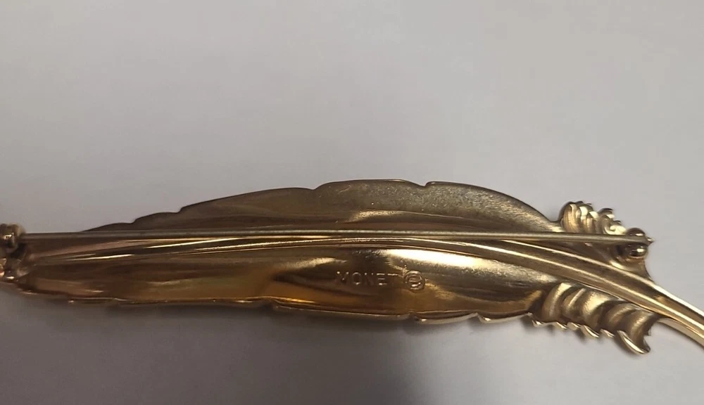 Vintage Monet Brooch Leaf Textured 2.25" Signed Goldtone. Condition is Pre-owned. Shipped with USPS Ground Advantage.