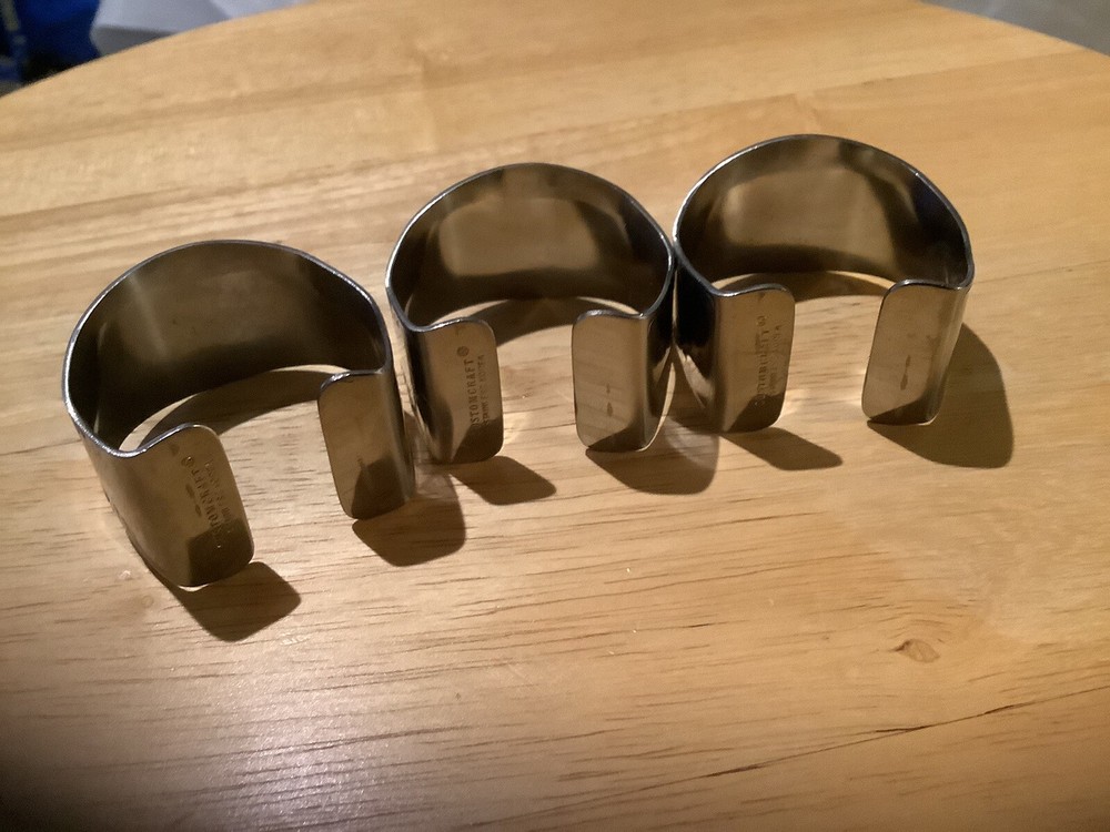 This vintage set includes 3 Custom Craft stainless steel napkin rings featuring a monogram 'B' with floral accents. The napkin rings are designed for various occasions such as Easter, Engagement, Christmas, Parties, Weddings, Anniversaries, or for a romantic setting. The intricate floral pattern adds a touch of elegance to table settings, making them a charming addition to any dining experience. Each napkin ring is personalized and exudes a holiday theme, perfect for adding a special touch to gatherings or celebrations.