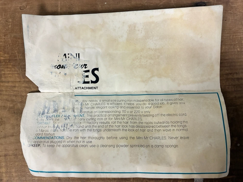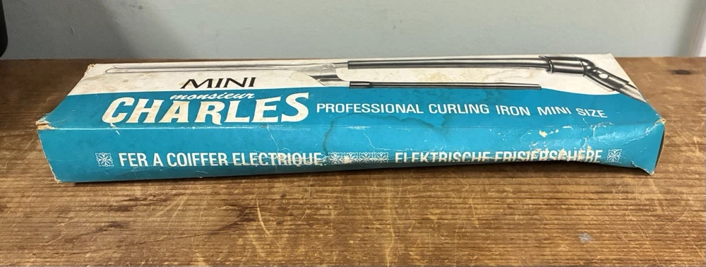 Monsieur Mini Charles Professional Curling Iron W/Box Vintage Tested and is working. Box is battered. C1