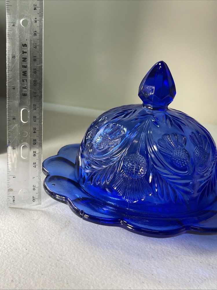 Vintage Mosser Thistle Cobalt Blue Glass Covered Butter Cheese Dish.. Состояние товара: Used. Отправлен: USPS Ground Advantage.
