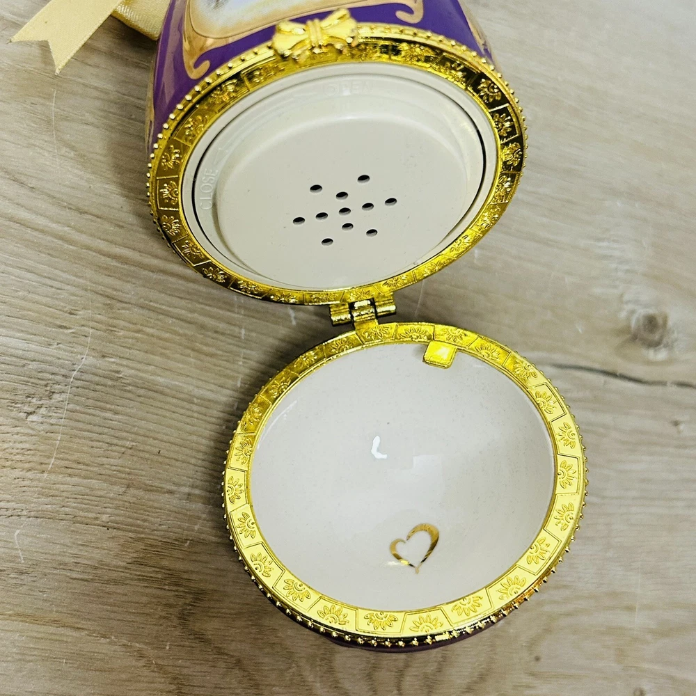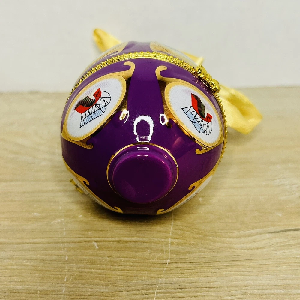 Vintage Mr Christmas purple porcelain egg ornament musical trinket box. Includes original box and instructions. Plays It Came Upon A Midnight Clear. In excellent, like new condition.