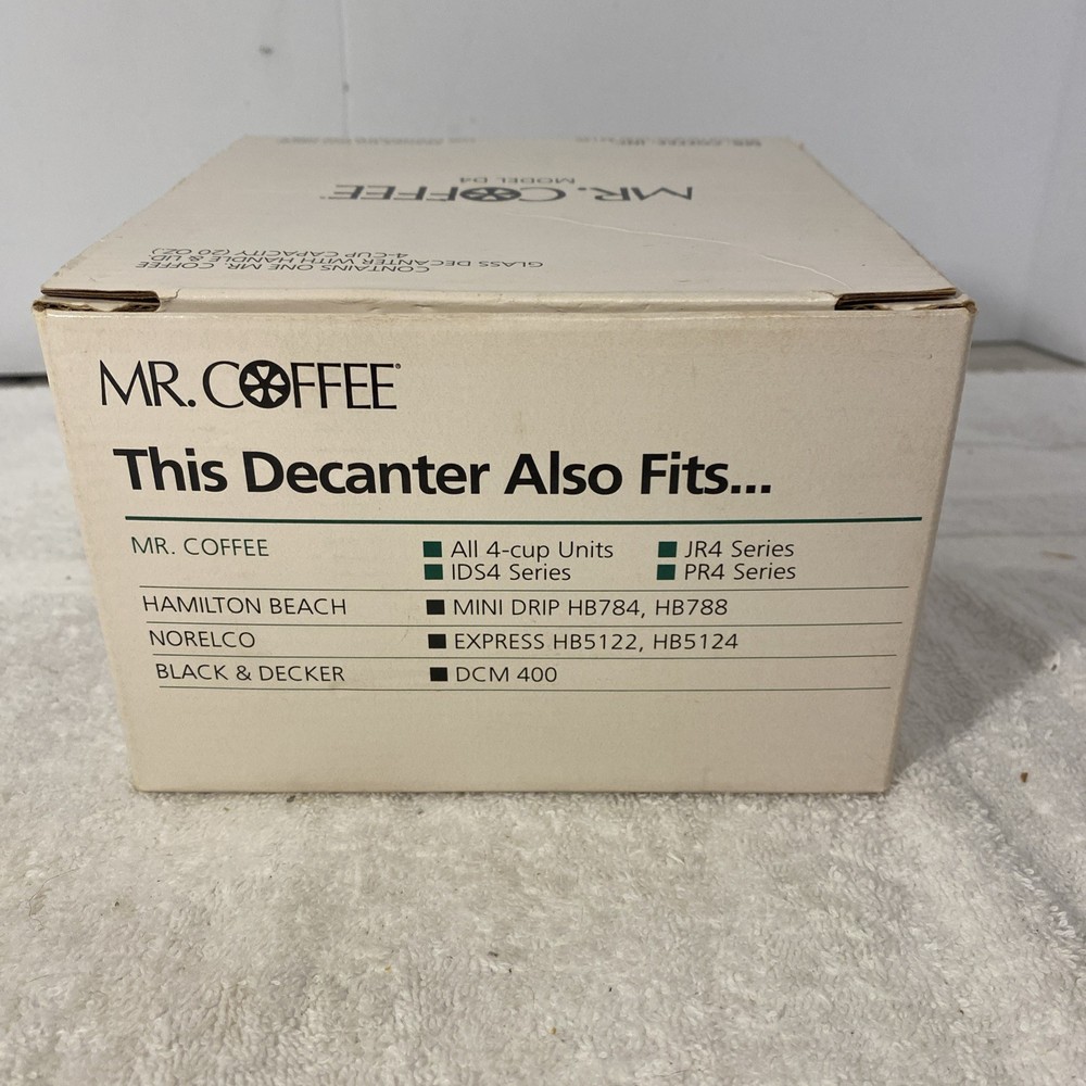 Vintage Mr. Coffee 4 Cup Glass Coffee Pot Decanter Model D4 Replacement. Shipped with USPS Ground Advantage.