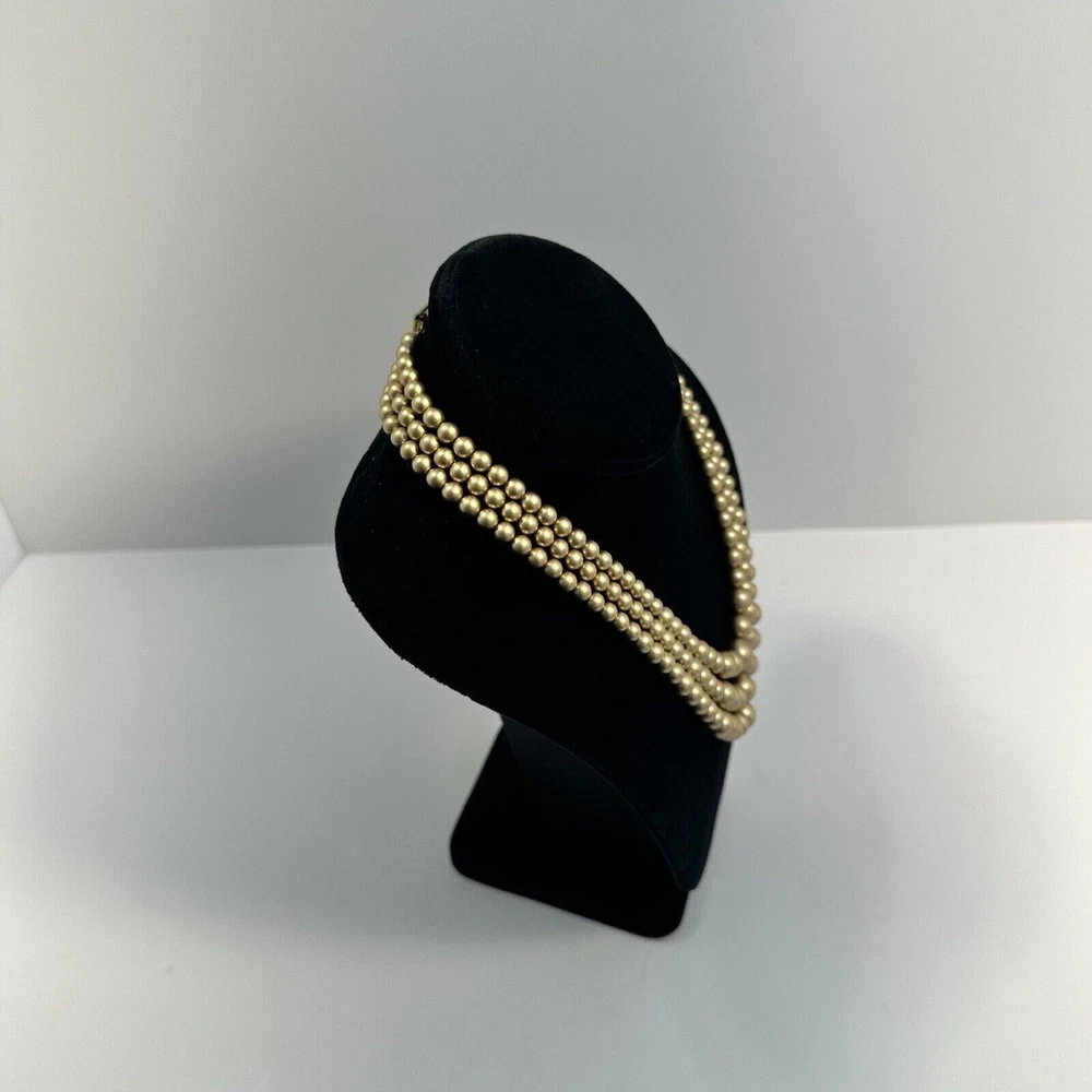 Vintage Multistrand Champagne Costume Pearl Choker Womens Necklace 1960s Style