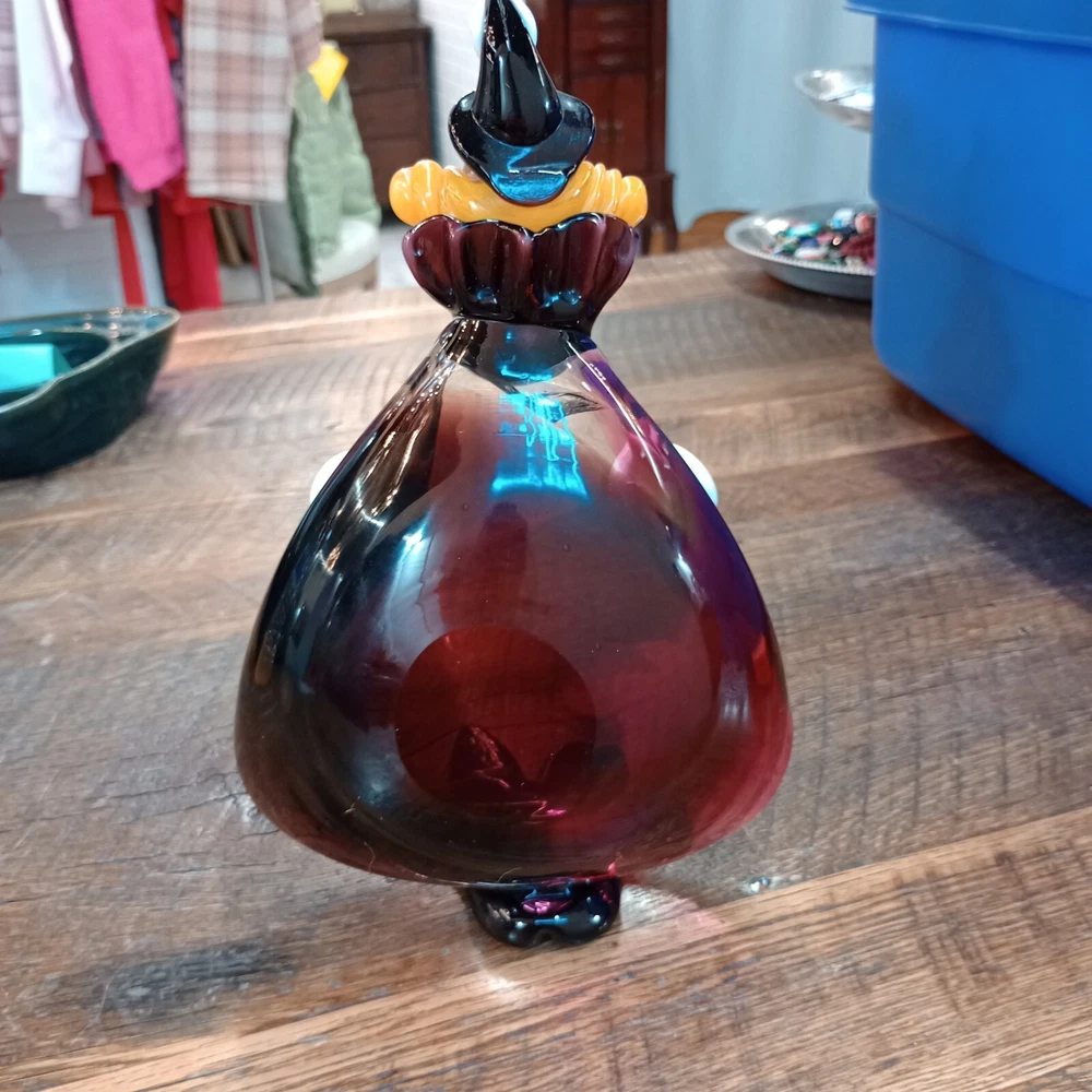 This vintage Murano Italian art glass clown ashtray is a beautiful addition to any collection. The hand-blown glassmaking technique used to create this piece is evident in its unique and colorful design. Measuring at 9 inches in length and 6 inches in width, this ashtray is the perfect size for any smoker. The clown theme is consistent with the subject/theme, and the multi-color glass material is eye-catching. This contemporary original piece was produced in Murano, Italy, adding to its value.