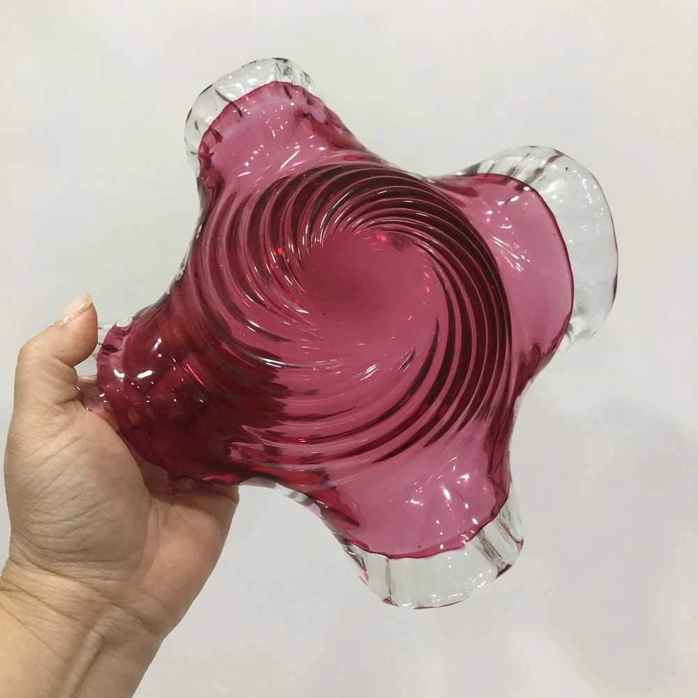 Vintage Art Glass Murano Style Berry Ruffled Hand Blown Candy Dish bowl 4.5”Tall; 8.5”Across. Condition is "Used in great shape! Please see pics for details. Shipped asap by USPS Priority Mail.