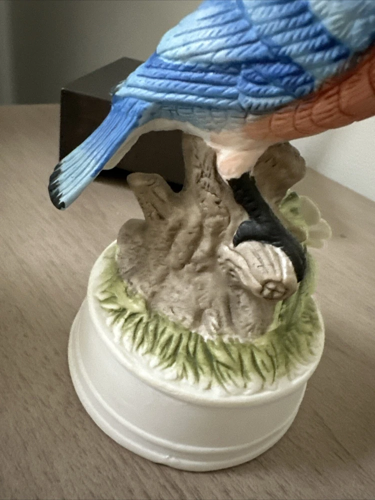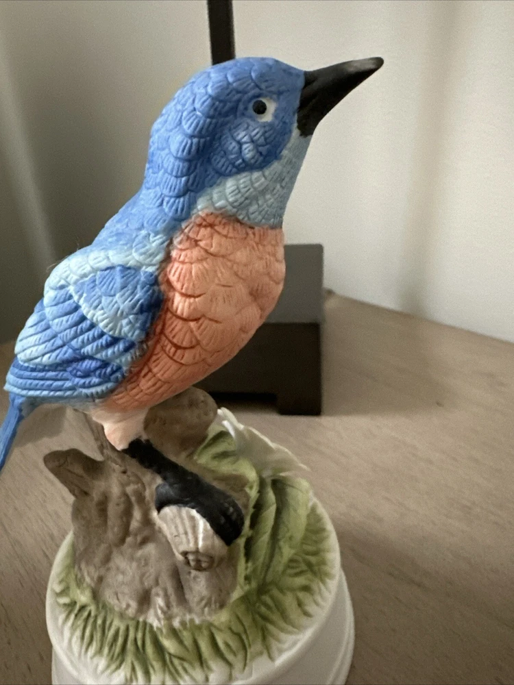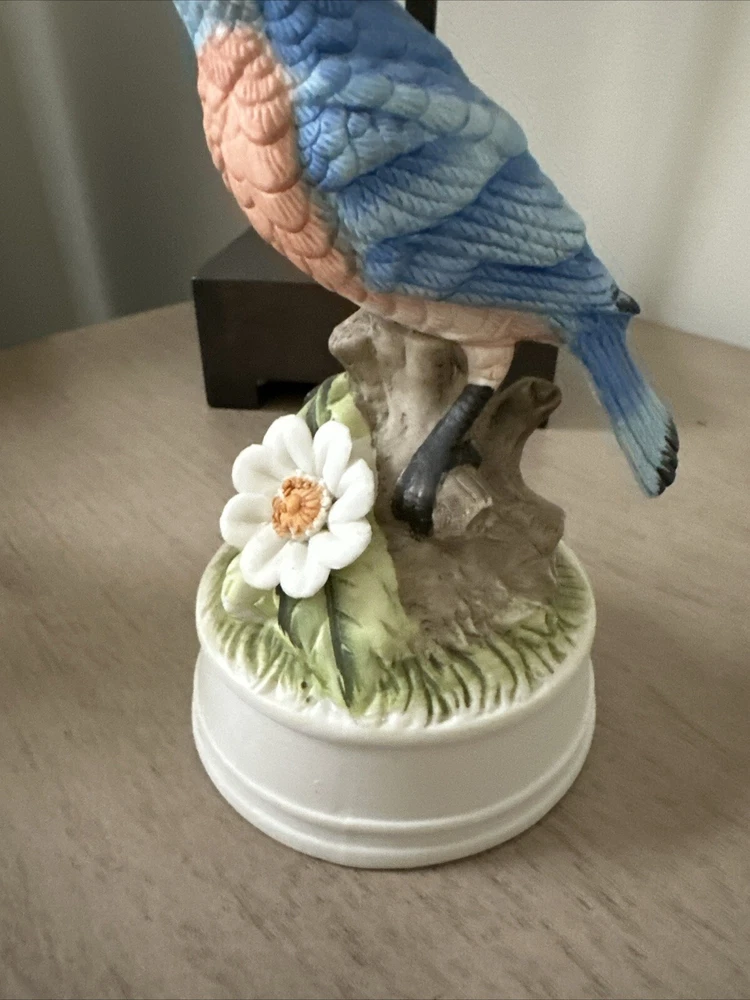 Vintage Musical Bluebird Porcelain Statue Figurine