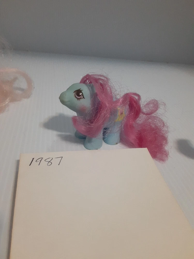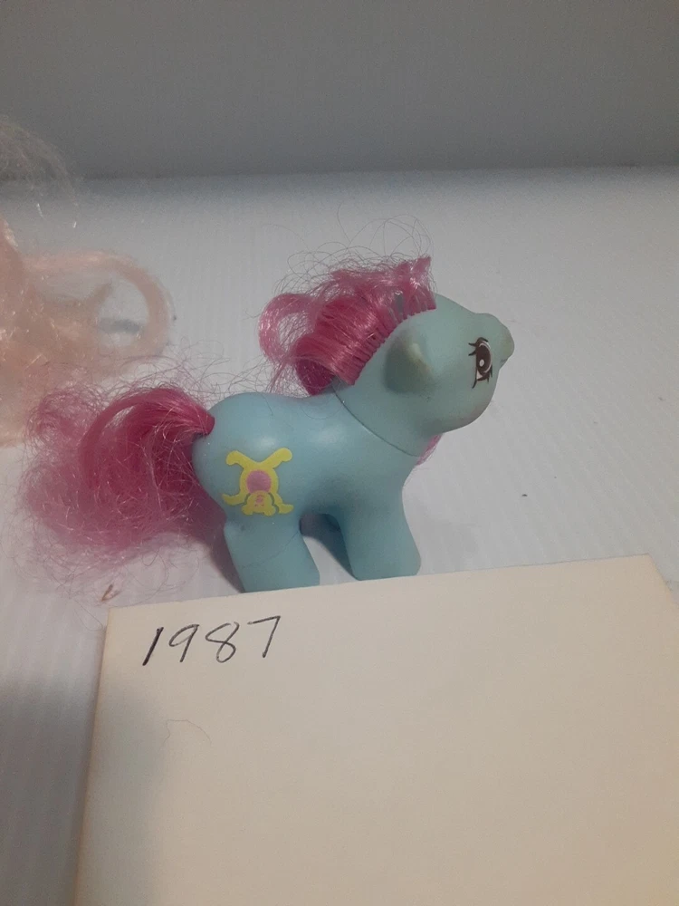 This lot of Little Ponies has led an exciting life and they wear their playtime scars well. A few have visited the Pony salon and from the looks of it, they did that sometime in the 90's! These are toys you can love or your kids or grandkids, and they will serve you faithfully. All of them made before 1987 are made in Hong Kong, and the youngest blue one hails from China. They have lived together for decades and are ready to live with you!