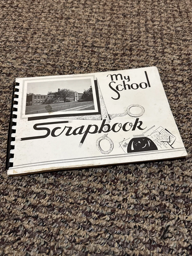 The Vintage My School Scrapbook is a multi-color memory book designed to capture and preserve school years memories. It is clean with no markings, making it a blank canvas for personalization and customization. This scrapbook is not handmade and is ideal for organizing and displaying photos, notes, and other memorabilia from school experiences.