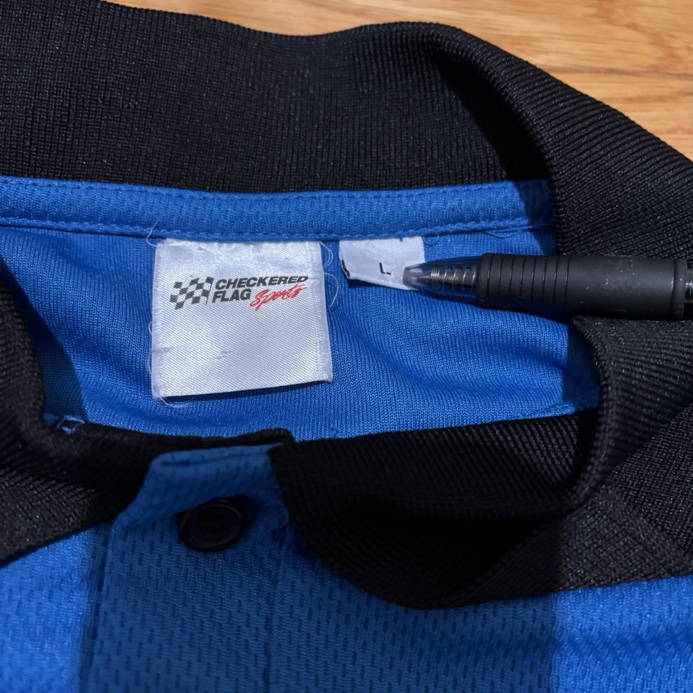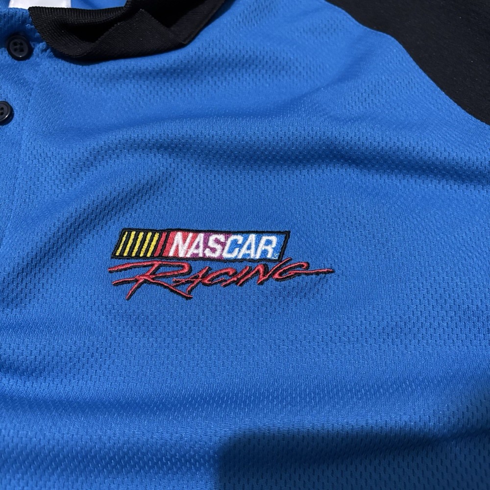 Vintage polo button-up NASCAR shirt in a men's size large from Checkered Flag Sports. Blue with black accents, embroidered NASCAR logo on left chest, short sleeve. Excellent used condition, no rips, stains, or flaws. Measurements: Chest (pit to pit) 23”, length 28.5”, sleeve 8” Next day shipping, great packaging, open to offers!