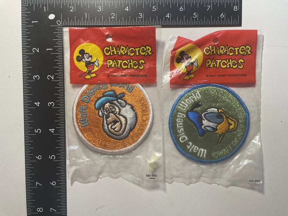 This vintage Disney character patch set features two beloved characters, Donald Duck and Baloo Bear, from the popular theme park and store franchises. The patches are embroidered and still sealed in their original packaging, ensuring their quality and authenticity. They are perfect for collectors of Disneyana and Donald-themed items, and are sure to bring back fond memories of visits to Disneyland or DCA. The patches are made of high-quality materials and were manufactured in an unknown country or region. Add them to your collection or give them as a gift to a fellow Disney fan.