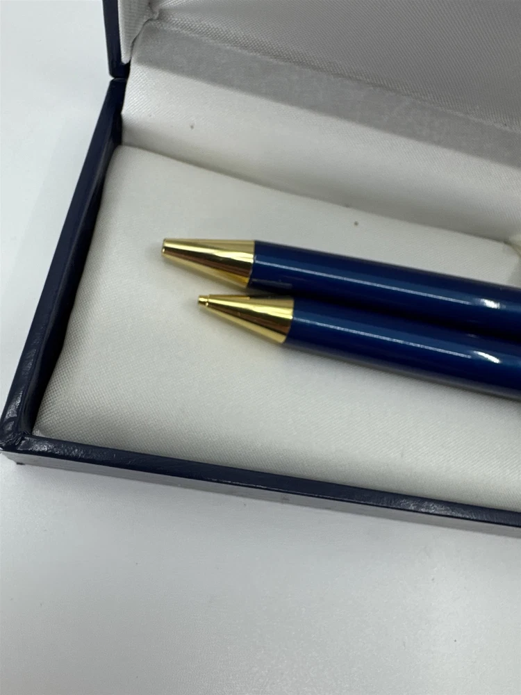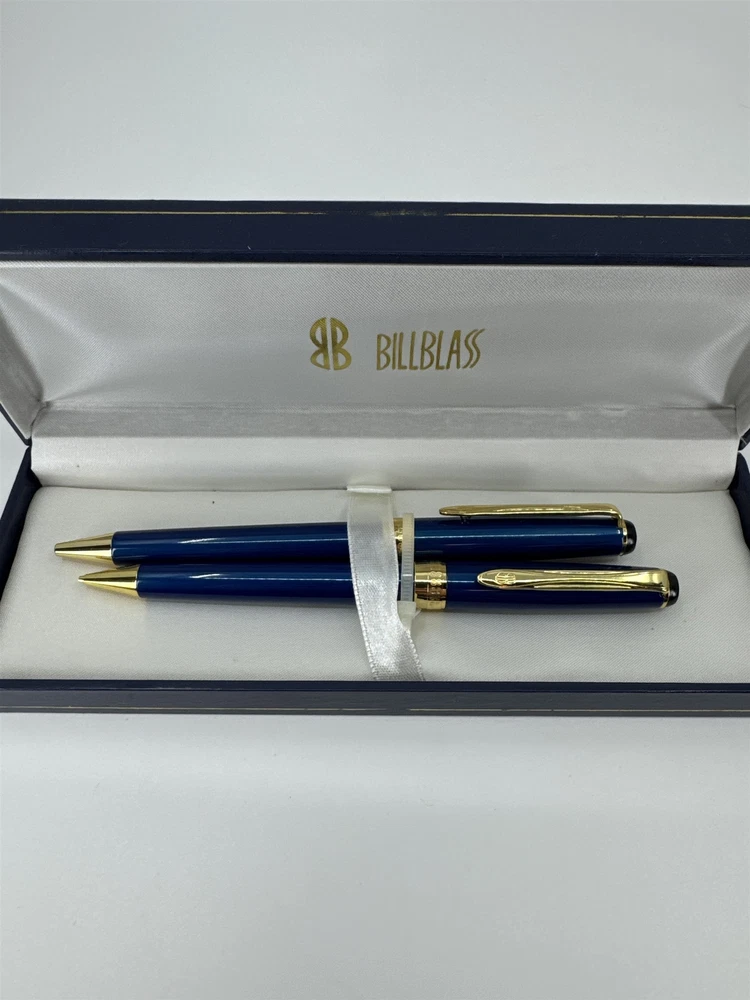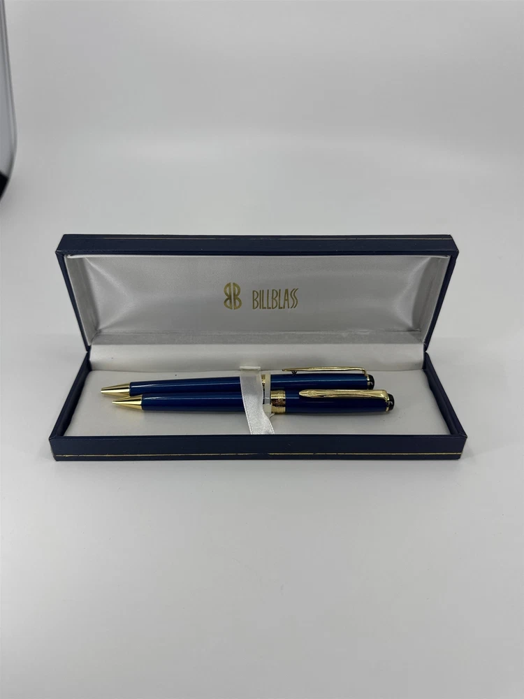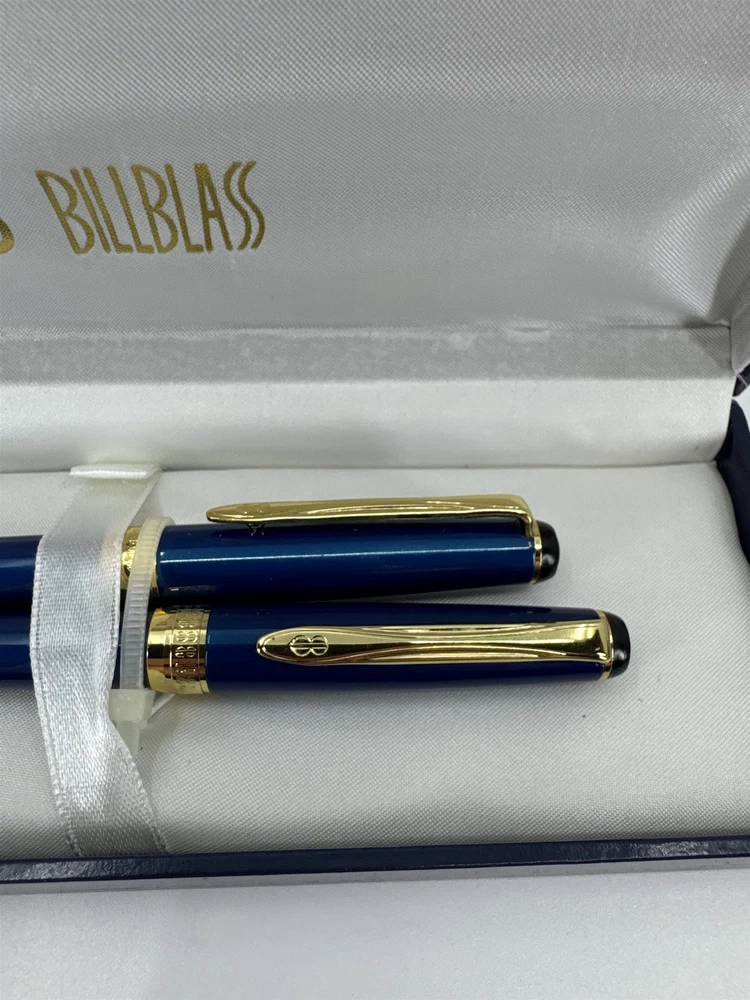 Vintage NOS Bill Blass Set of Mechanical Pencil and Ballpoint Ink Pen Royal Blue