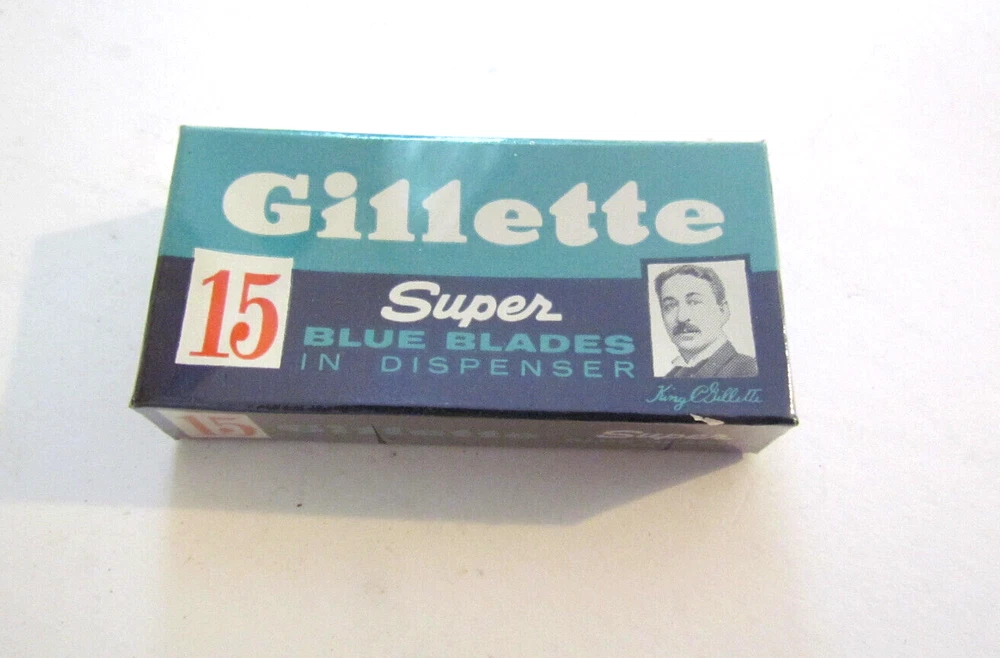 HomeVintage NOS Gillette 15 Super Blue Razor Blade Dispenser Unopened