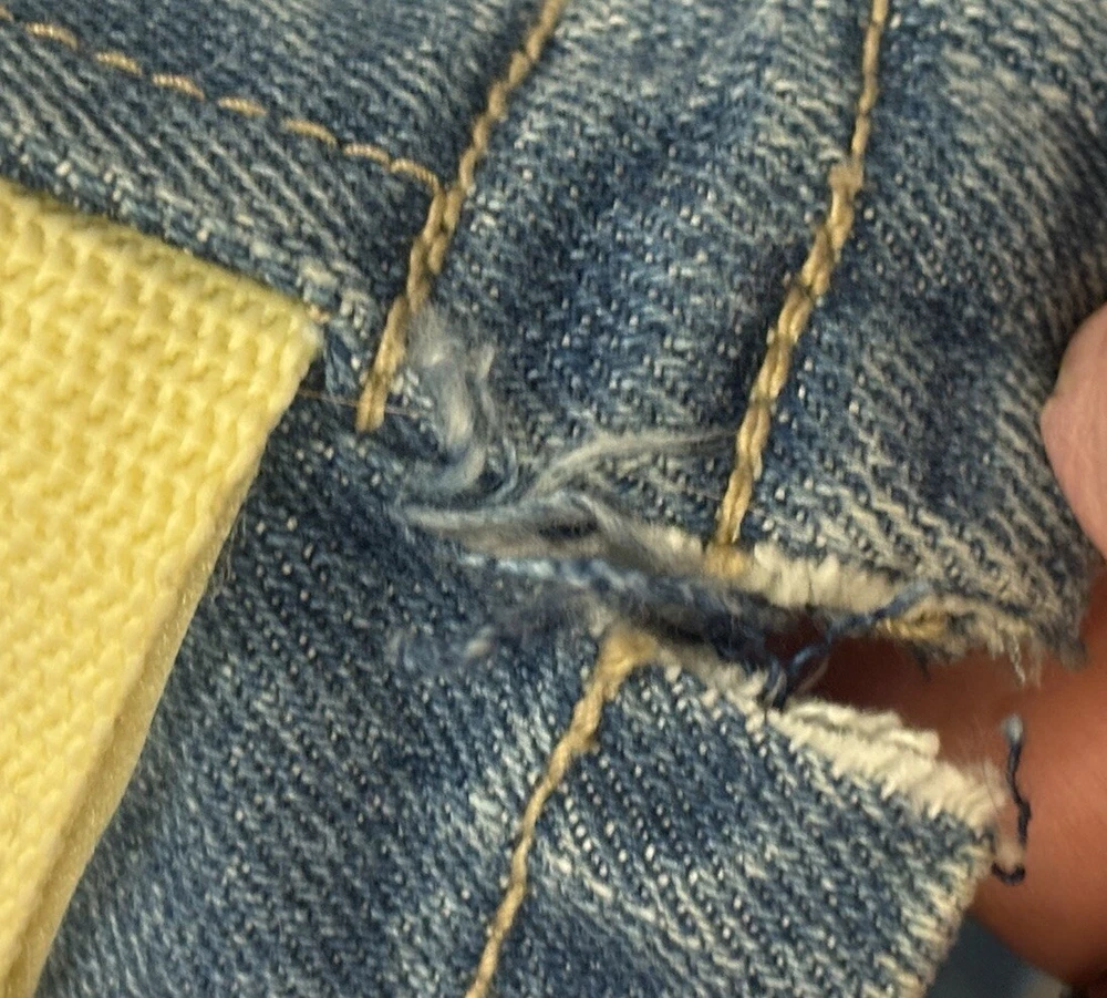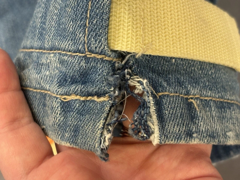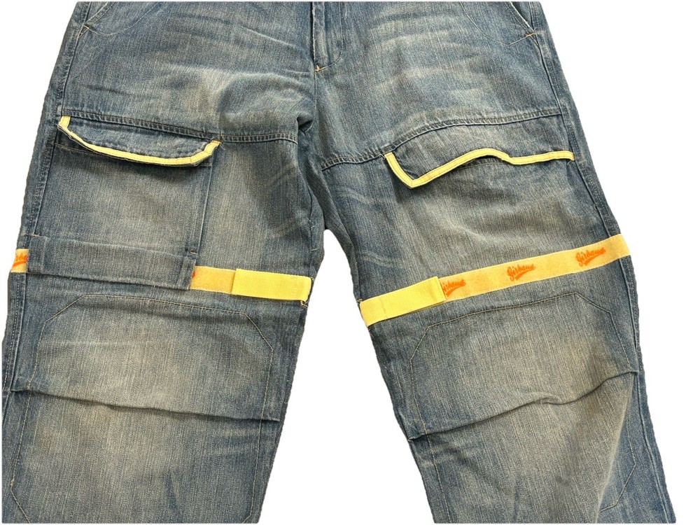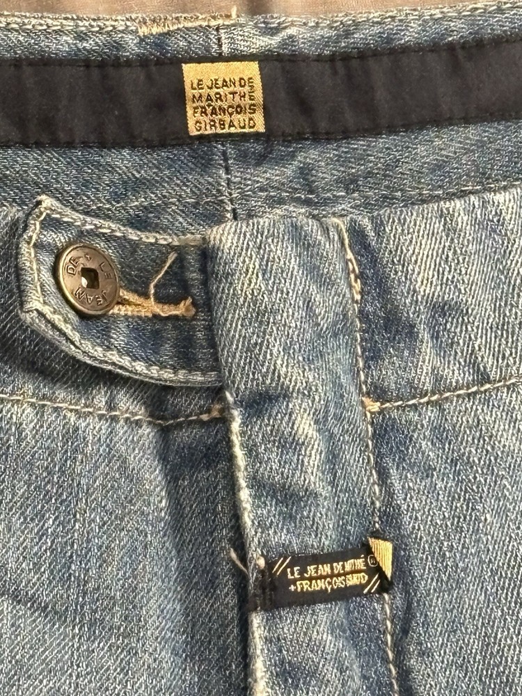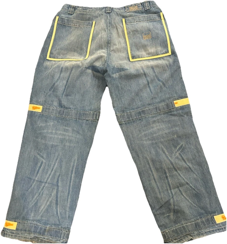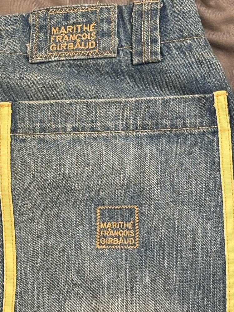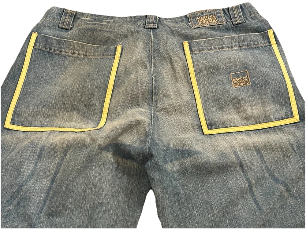 Awesome pair of vintage Y2K Marithe Francois Girbaud Taped Shuttle Jeans in men's size 40, 33" inseam. Tape is off-white and orange, which seems to be rather hard-to-find. Still has tag, however DOES have some signs of wear on the bottom of legs. Both hems are torn on the inside and have some fraying. Some minor staining on bottom of left leg that will probably come out. Please see photos for these details! Other than that, EXCELLENT condition!! Thanks for checking out our listing! We are two best friends and part-time online resellers, who love to hunt for new treasures. We accept all reasonable offers, so please reach out! We also offer 30 day free returns for any reason. We are always listing new items, so please check out our other listings and come back often! We hope you'll become a repeat customer! Thank you so much!