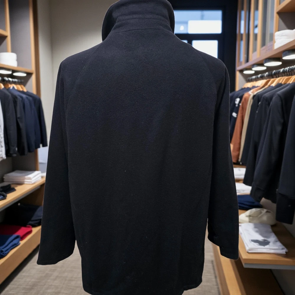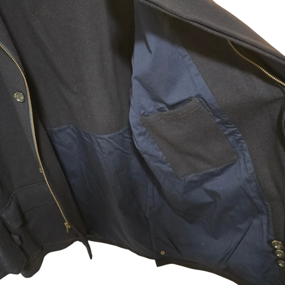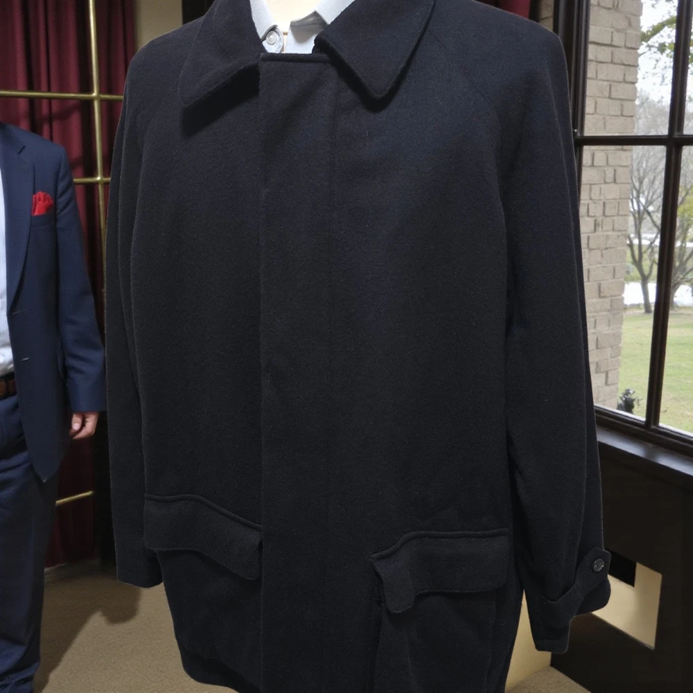 Size: tagged a XL measures as a 44r USA with 27 -inch arm length and a jacket length of 35 inches. For complete measurements, see photo #2 To see exactly how we measured, see the last series of photos. Condition: vintage new with tags. No flaws were found Zip and hidden button front, mediumweight, raglan sleeve, navy flannel, dual vent that can be snapped shut Return policy: We offer free shipping and no returns. We can not afford to offer both in the highest return category on eBay. It becomes very expensive to mail out items for free for people to try on if they are not confident in checking the measurements in picture #2. If you prefer to have the ability to return the item and pay $17.95 shipping, please send us a message, and we can change the listing format to offer returns. The $17.95 shipping cost would break us out even in the case you needed to return the item. You must contact us upfront to make sure the owner of this consigned item is OK with an option to return. We ship the next business day after the payment is made.