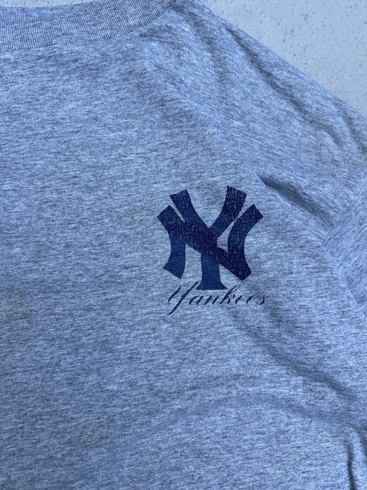 Embrace the classic appeal of a New York Yankees vintage T-shirt, a timeless addition to any fan's wardrobe. This regular-fit, medium-sized tee is designed for comfort and style, featuring short sleeves and a traditional crew neck. Crafted from soft, breathable cotton, it’s a comfortable choice for everyday wear or your next game day.With its understated gray color, this shirt serves as a versatile base for any outfit, while the iconic Yankees logo adds an authentic sports touch. Whether you're channeling the spirit of the '90s or simply showing your team pride, this shirt is a quintessential piece for any enthusiast. Ready to ship within the US, it's the perfect piece for fans looking to add a touch of nostalgia to their collection.