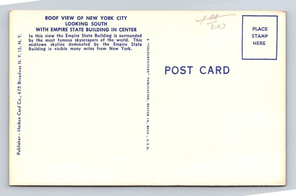 Vintage NYC Aerial View South Featuring Empire State Building Postcard