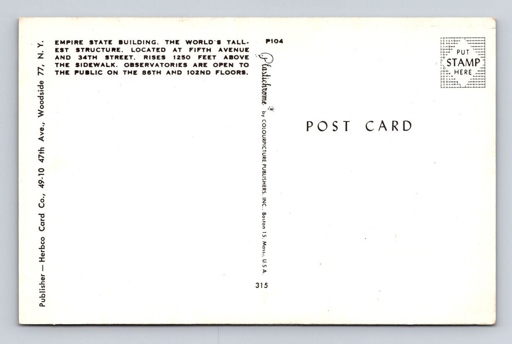 Vintage NYC Empire State Building Souvenir Postcard New York City NY
