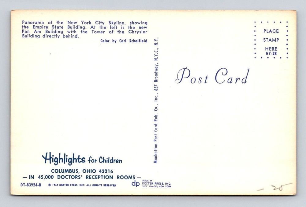 Vintage NYC Skyline Postcard Featuring Empire State Building