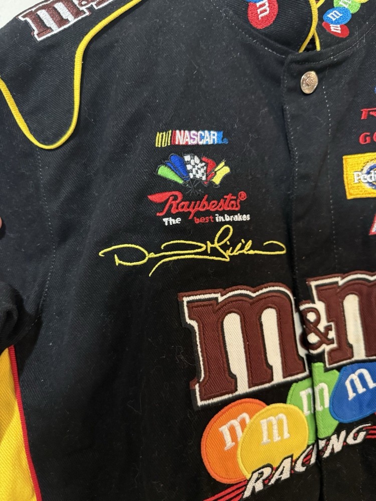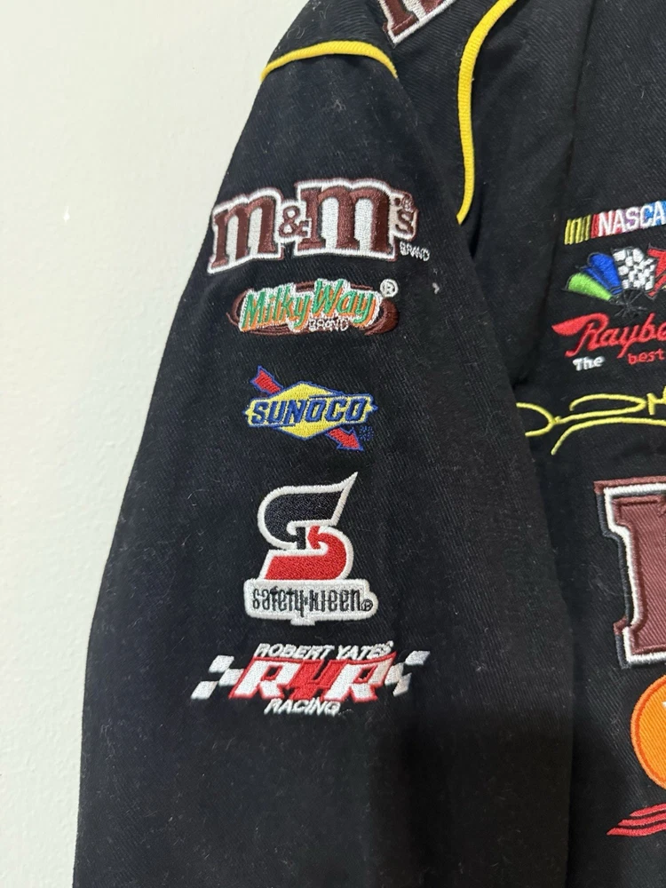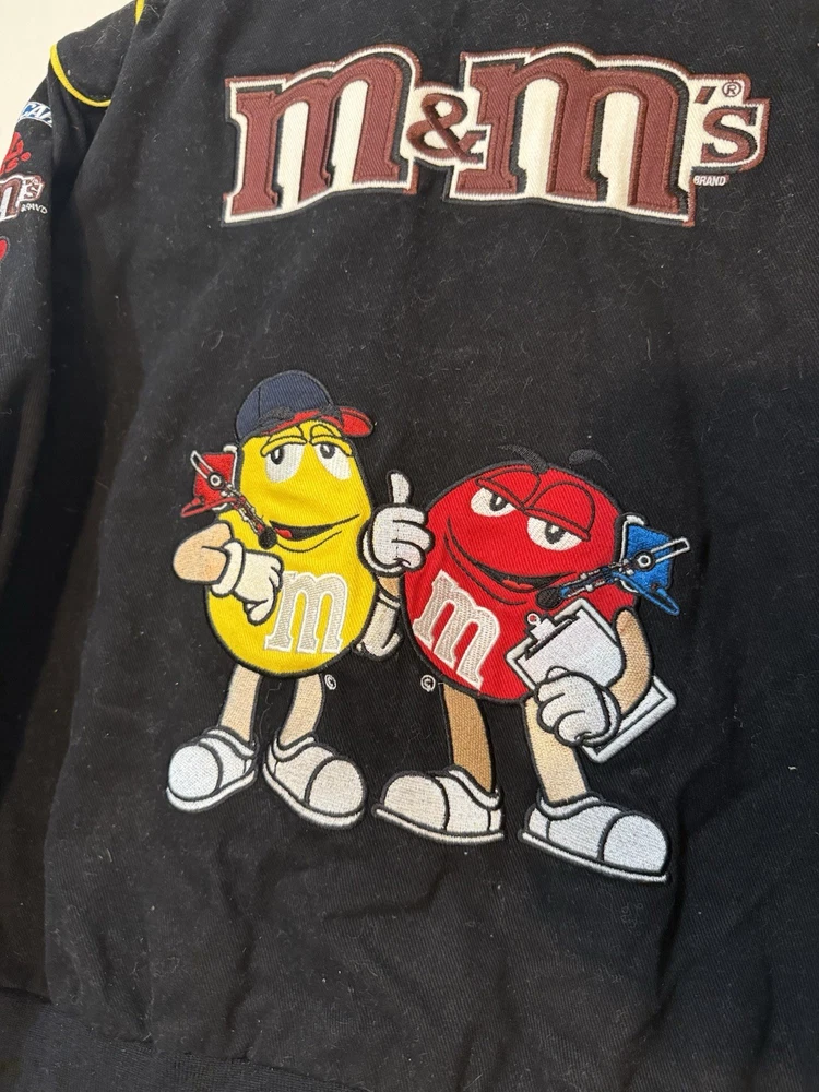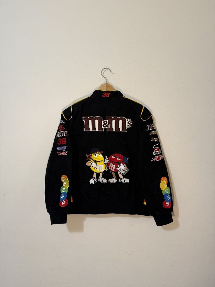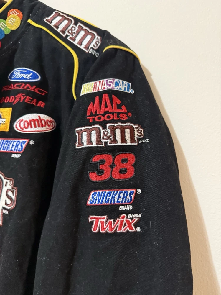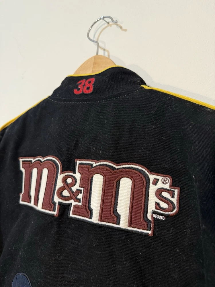 Vintage NASCAR M&M Racing Team #38 Jeff Hamilton Designs Jacket - Insanely RARE NASCAR jacket - Super sick patchwork throughout - Very high quality and comfortable jacket - Don’t pass up this M&M classic - All buttons still attached and work - Overall good condition with all flaws shown - Men’s size 2XL - Measurements: Length: 24 inches Pit to pit: 23 inches Sleeve from neck: 28 inches Sleeve from pit: 18 inches Bottom opening width: 20 inches - DM me if you have any questions!! #vintage #nascar #racing #M&M’s