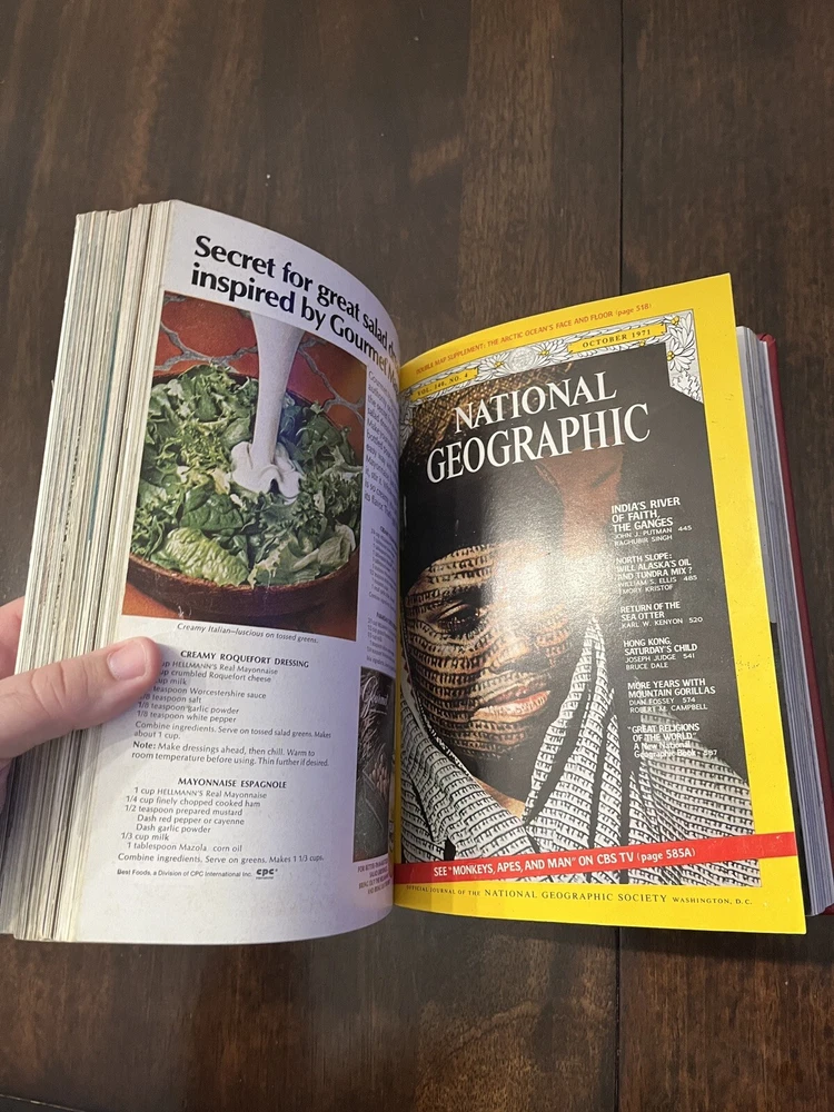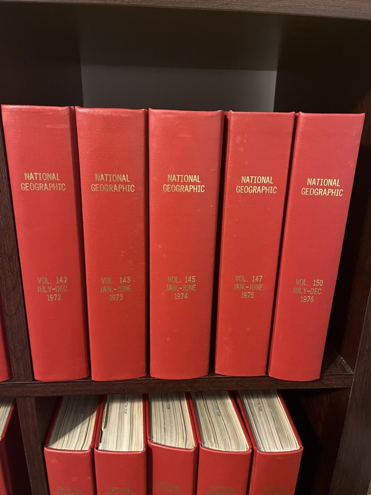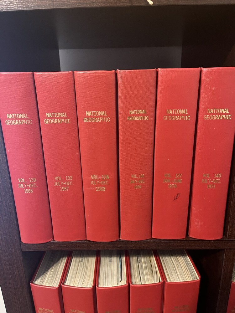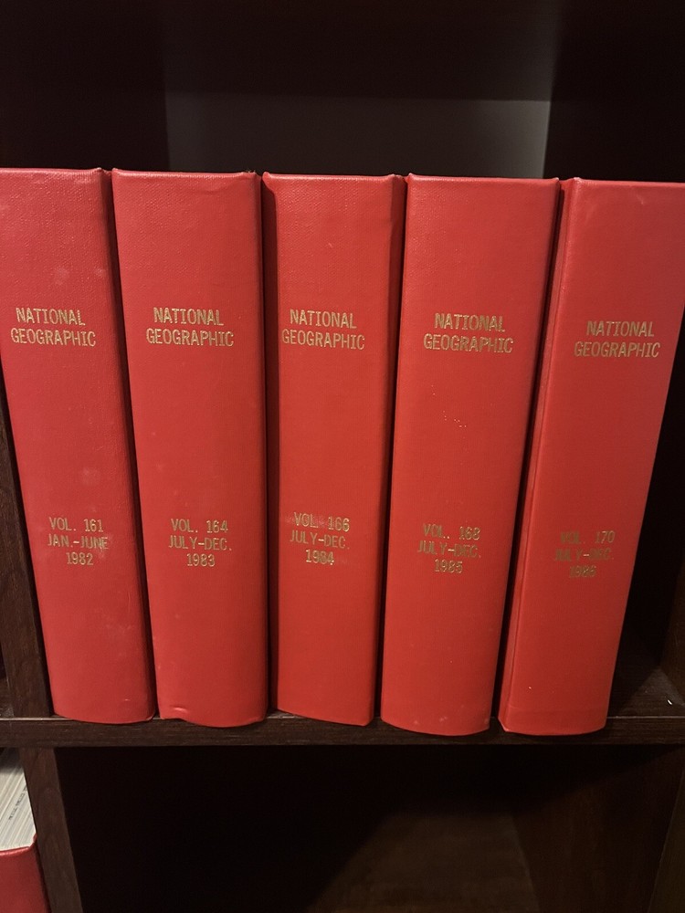 Have several hardbound National Geographic books ranging from the years 1966-1977! Each hardbound book contains 6 issues, no maps/inserts. Condition of all is generally good with some being even great. Mostly what will be noticeable will be on the red hardbound itself. The pages themselves are in great shape. These did come from a closed library so there will be several stamps from where it came from, refer to the photos for reference. If you have any questions or want detailed photos of a specific one, feel free to contact me! Thank you!