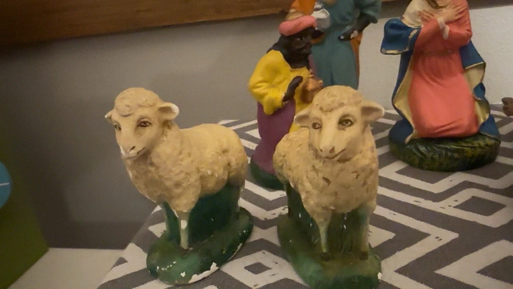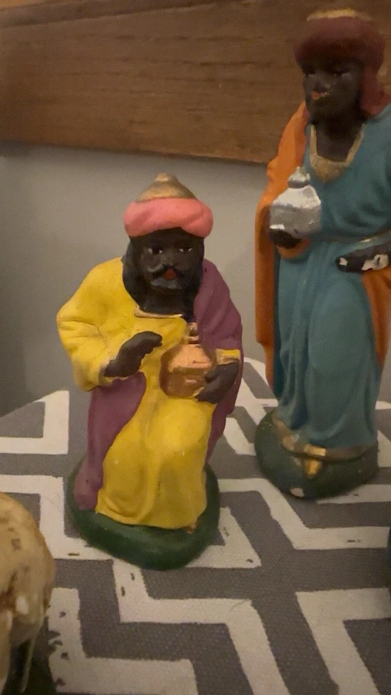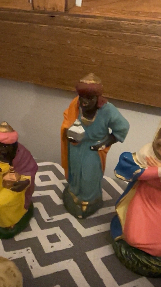 This vintage set of paper mache figurines is sure to add a touch of elegance to your Christmas decor. Crafted in Italy, these large figurines feature intricate details and are perfect for collectors or anyone looking to add a unique touch to their holiday decor. The set includes six figurines, including Marie, Mary, and other subjects, and measures 12 inches in length, 9 1/4 inches in height, and 4 5/8 inches across. These figurines are perfect for anyone looking to add a touch of vintage charm to their holiday decor. Whether you're a collector or just looking for a unique decoration, these paper mache figurines are sure to impress. So why wait? Add this beautiful set to your collection today! Open to reasonable offers, comes from a smoke free home.