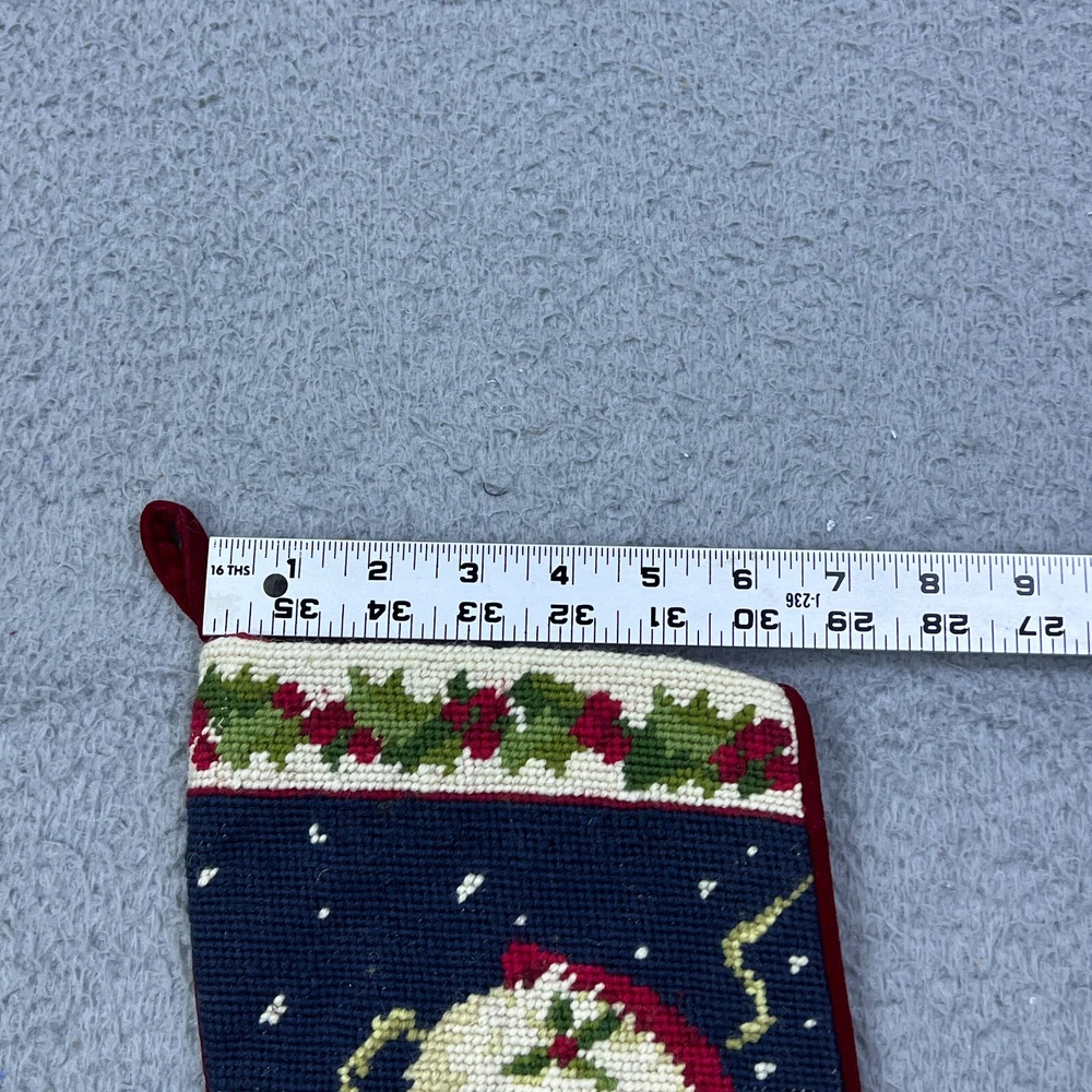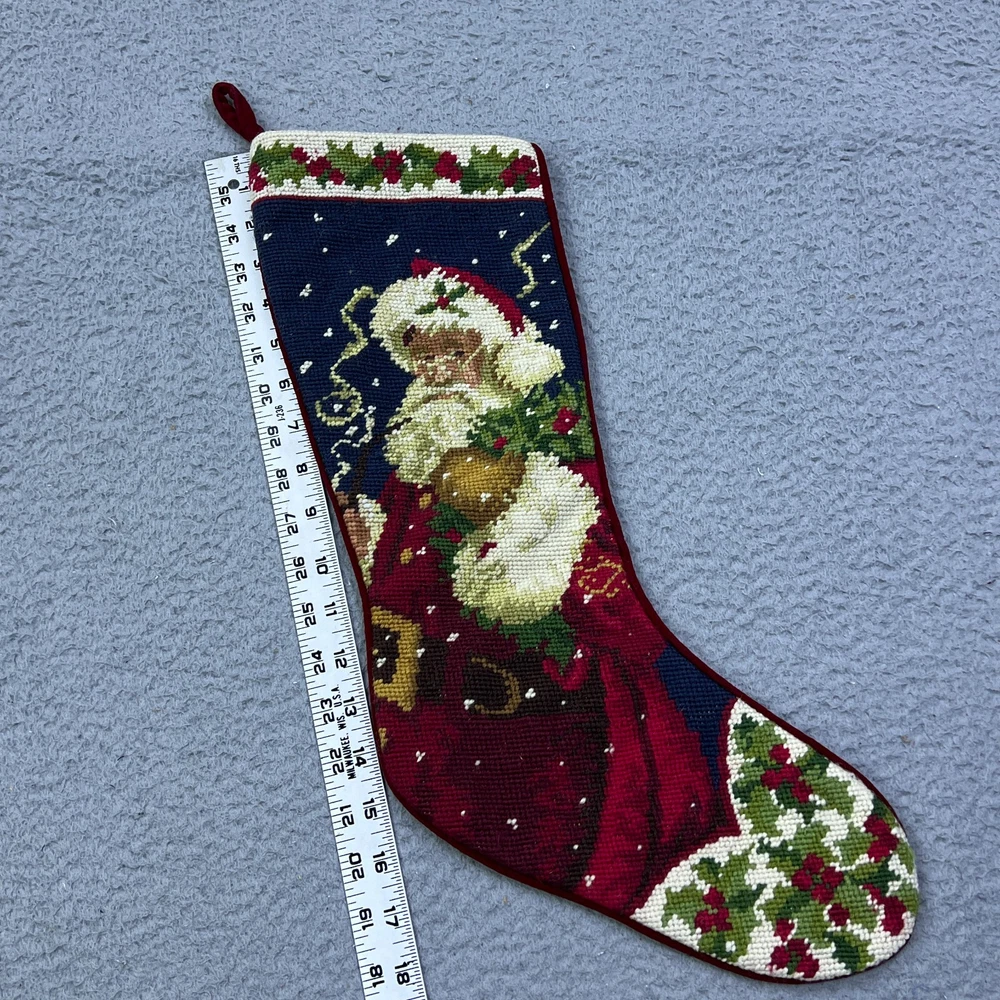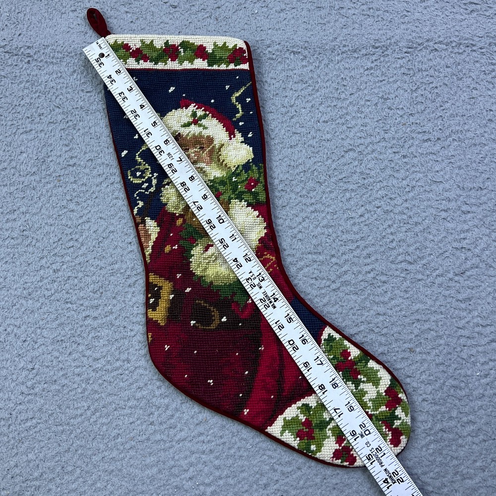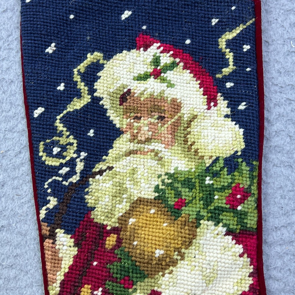 This vintage needlepoint stocking is absolutely charming! The Santa, holly, and snow design is festive and timeless, and the velvet backing adds a cozy touch. It’s in great used condition with just light wear—perfect for adding nostalgic holiday cheer. The detailed photos really show its character. Would make a wonderful addition to any Christmas decor!