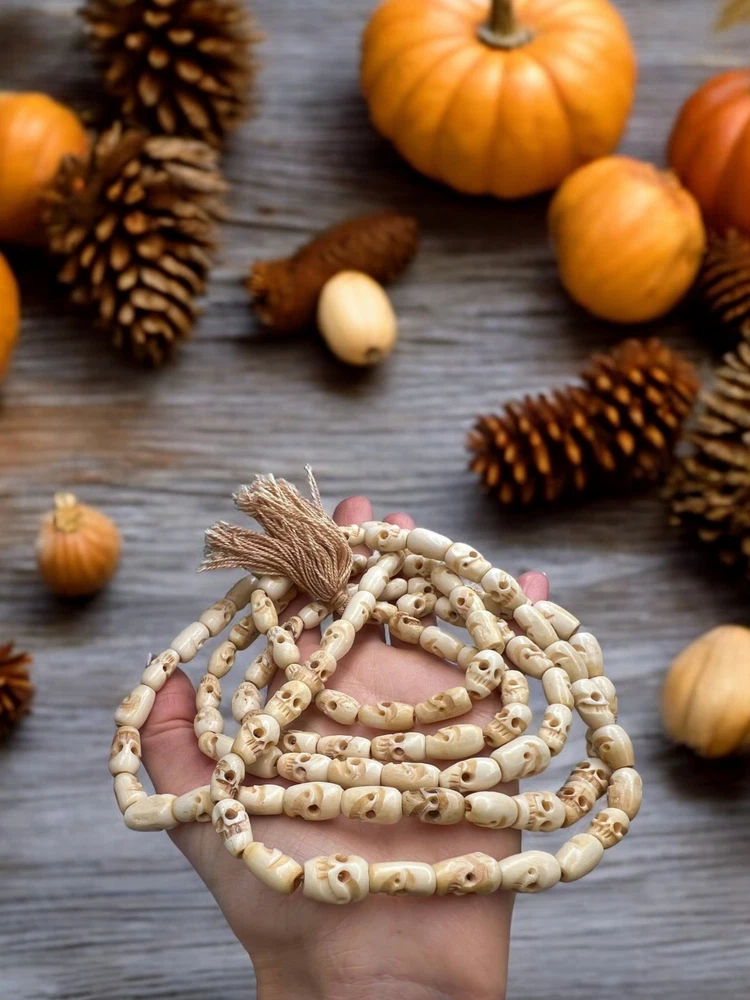 Dear collectors, I am offering a gorgeous piece from my ocean jewels collection! Unusual Vintage Nepal Tibet 106 Prayer Bead Buddhism Bone Skull Meditation Mala Necklace This is a lovely item to own or to give as a special gift. Excellent condition! Length / 144 cm / 56.6 inch Weight / 75 gram Delve into the spiritual essence with this Vintage Nepal Tibet Buddhist 106 Bead Mala Necklace, a sacred accessory for practitioners of Buddhism. Each bead is meticulously crafted, featuring a unique bone and skull design that serves as a constant reminder of the delicate balance between life and the afterlife. Embrace the serenity and profound meaning behind this piece, originating from Nepal - a country rich in cultural heritage and spiritual tradition. The Mala Necklace is an emblem of meditation and prayer, designed to offer comfort and guidance as you embark on your spiritual journey. If you find yourself attracted to it, I highly recommend that you buy it now.