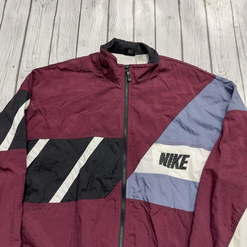 Vintage Nike 90s Windbreaker Jacket One of a kind vintage Nike jacket! Rare coloring/pattern design. Its an XL but fits like a loose large, great for layering and oversized fits. In almost perfect condition. Has two almost invisible holes on back at the very bottom (see pictures) white around wrists as shown in pictures as well.