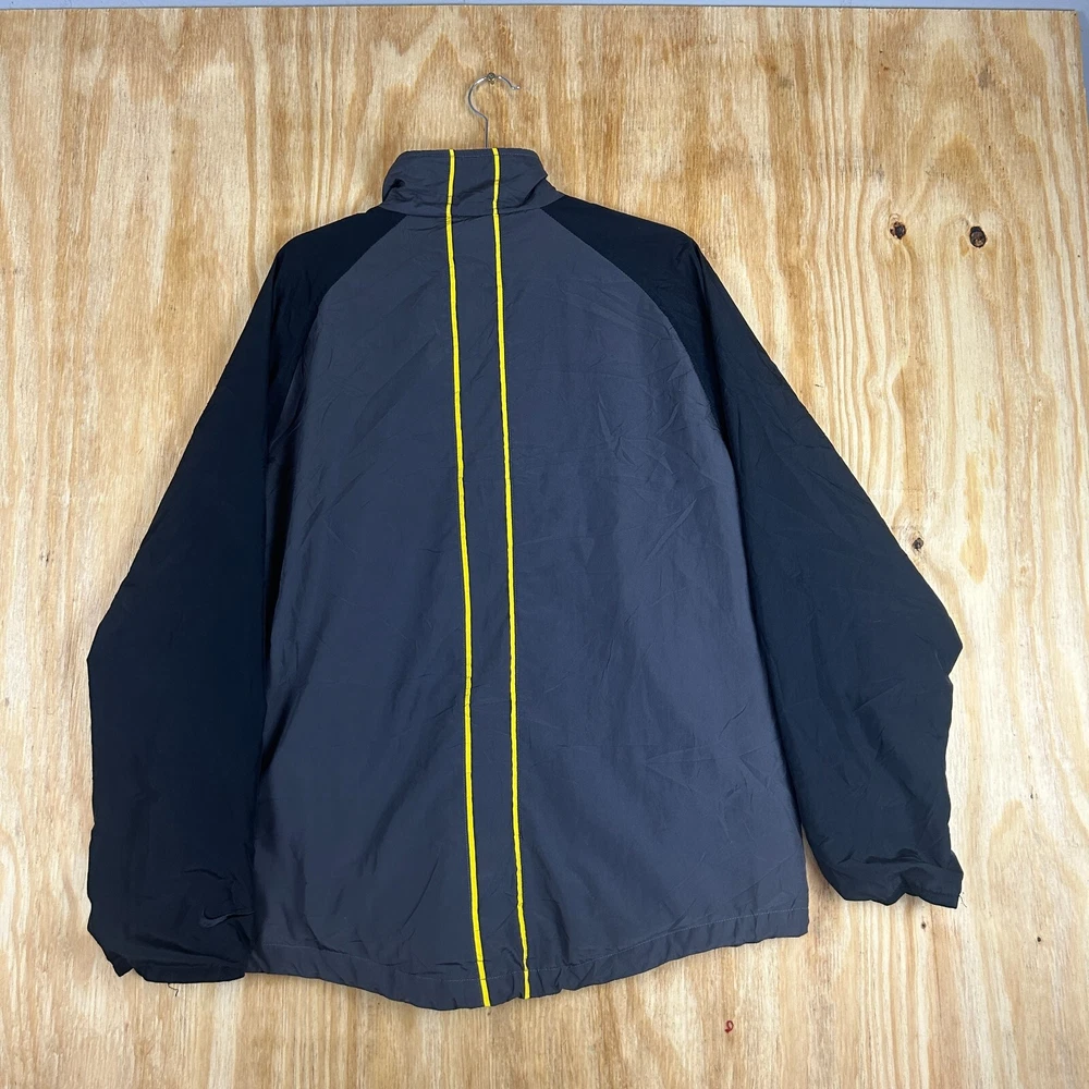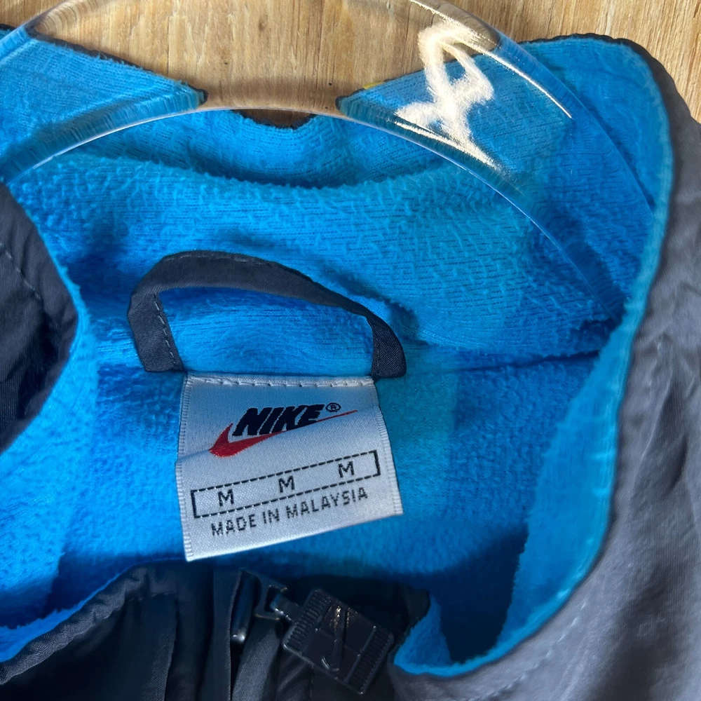 Embrace the retro vibe with our Vintage Nike Court Full-Zip Band Embroidered Windbreaker. A true 90s gem, this men's medium jacket combines functionality with classic style, featuring a bold multicolor design that's sure to stand out. The durable polyester microfiber construction ensures a lightweight yet resilient barrier, perfect for a range of activities from running to casual outings. Equipped for all seasons, the jacket boasts a full zip closure, a comfortable band collar, and is machine washable for easy care. The embroidered Nike Air logo adds a touch of prestige to the relaxed-fit jacket, which is ideal for travel, workwear, or casual wear. Whether you're hitting the tennis court or just enjoying a brisk jog, this jacket's cotton lining and insulation offer warmth without the bulk. SKU: 24 0005