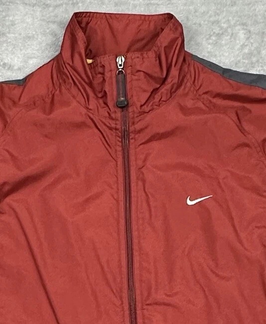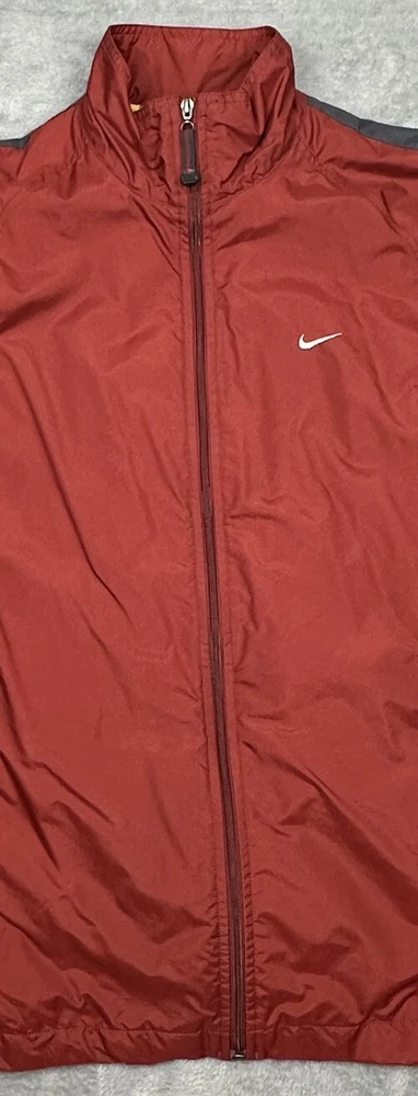 Vtg Nike Jacket Mens Large Burgundy Full Zip Windbreaker Pockets Lined Swoosh Excellent pre-owned condition and laundered. Please see measurements in photos. I ship next business day, but sometimes same business day and Saturday if order is paid for early enough. Please let me know if you have any questions. I am open to offers!! Feel free to look at other items in my store! Thanks!
