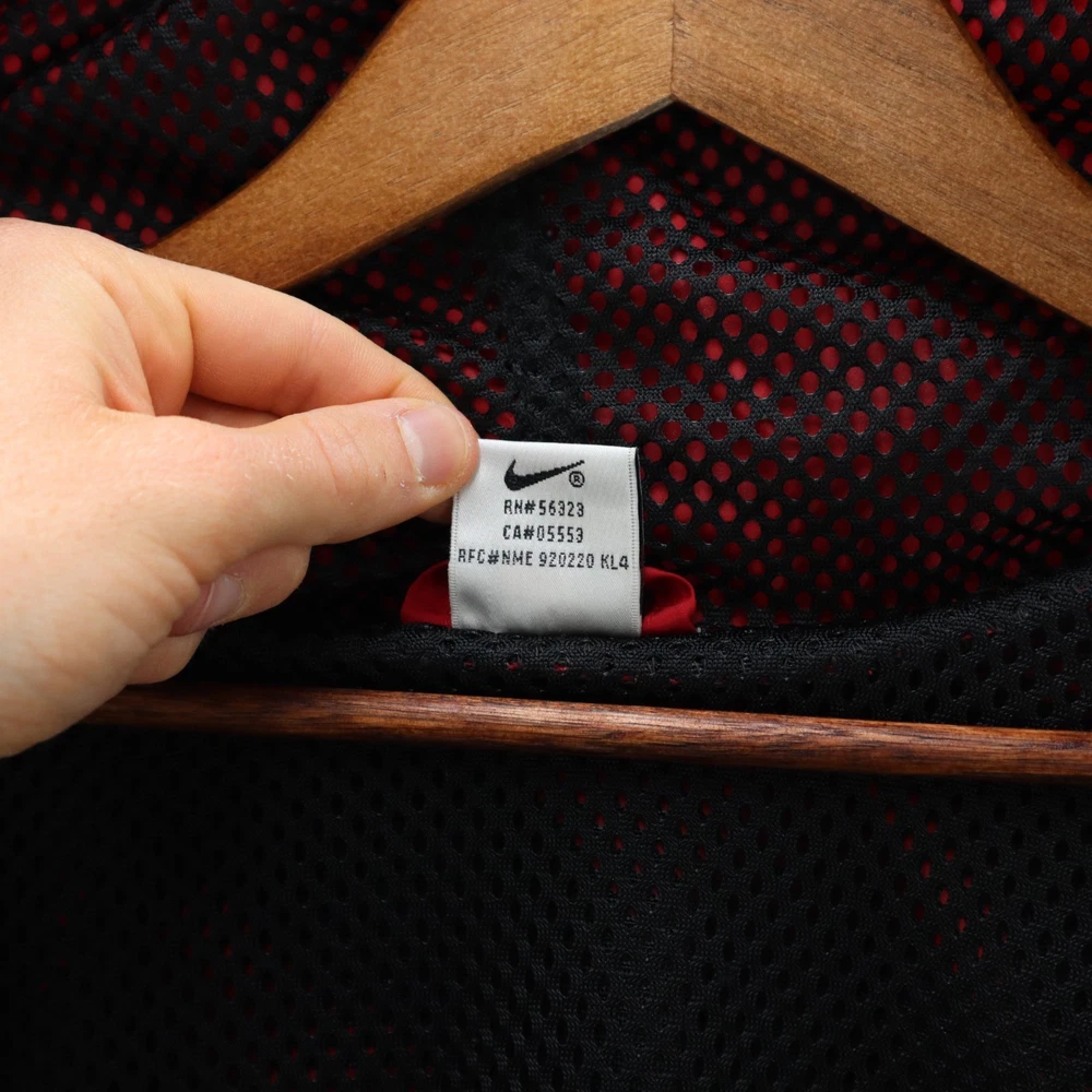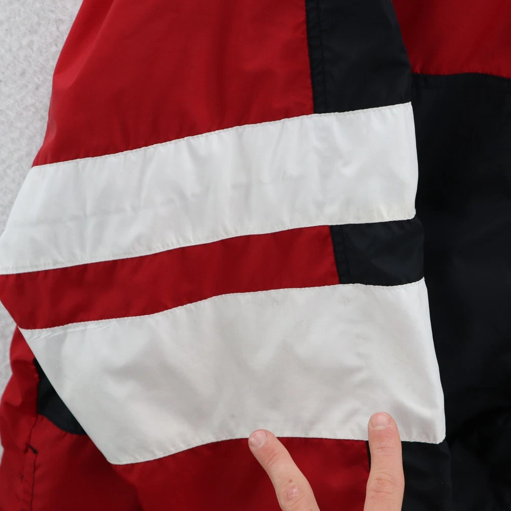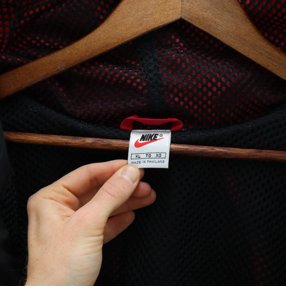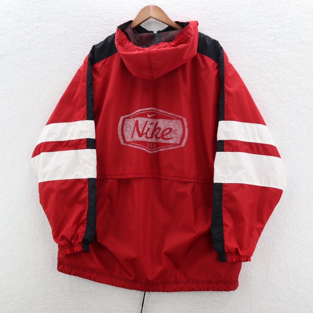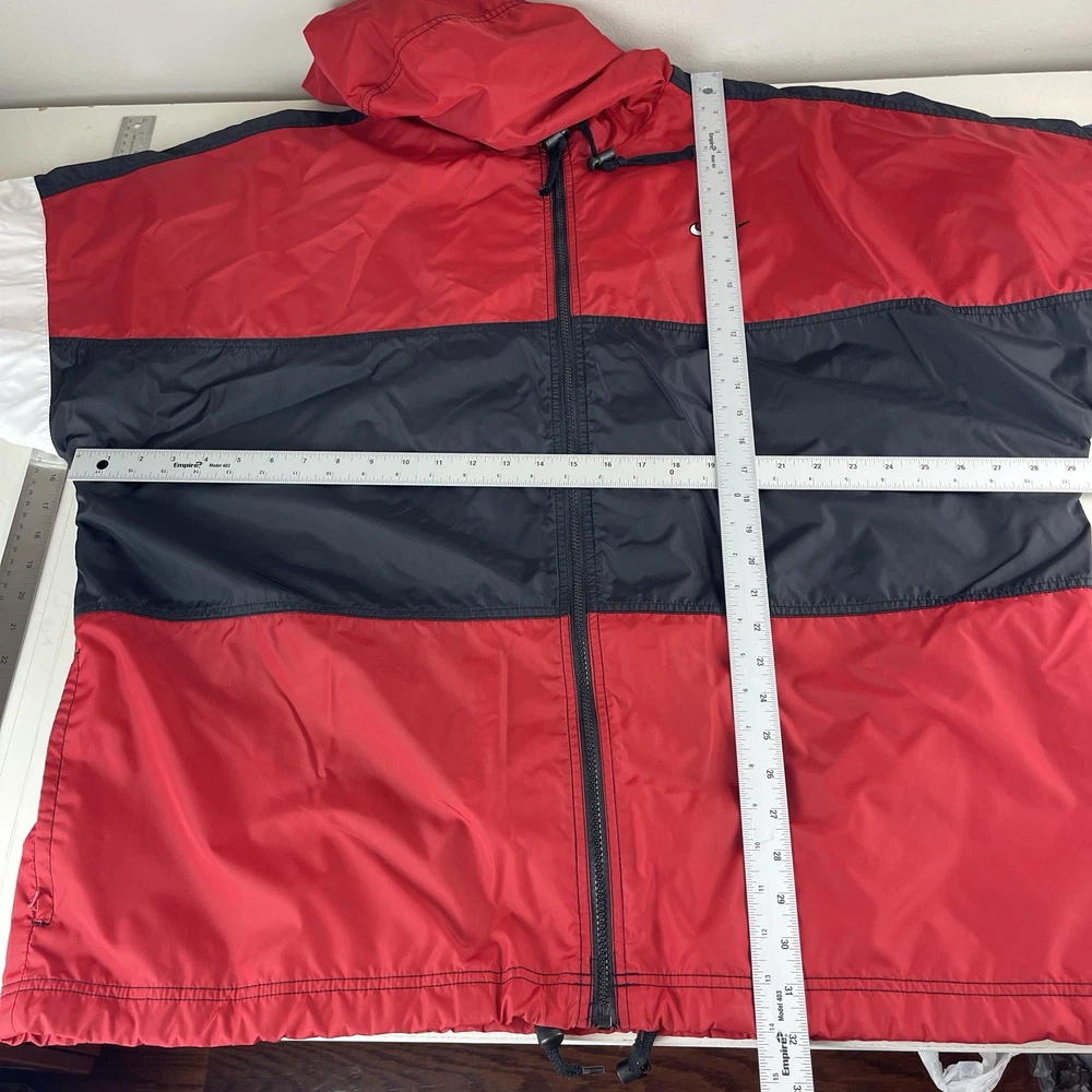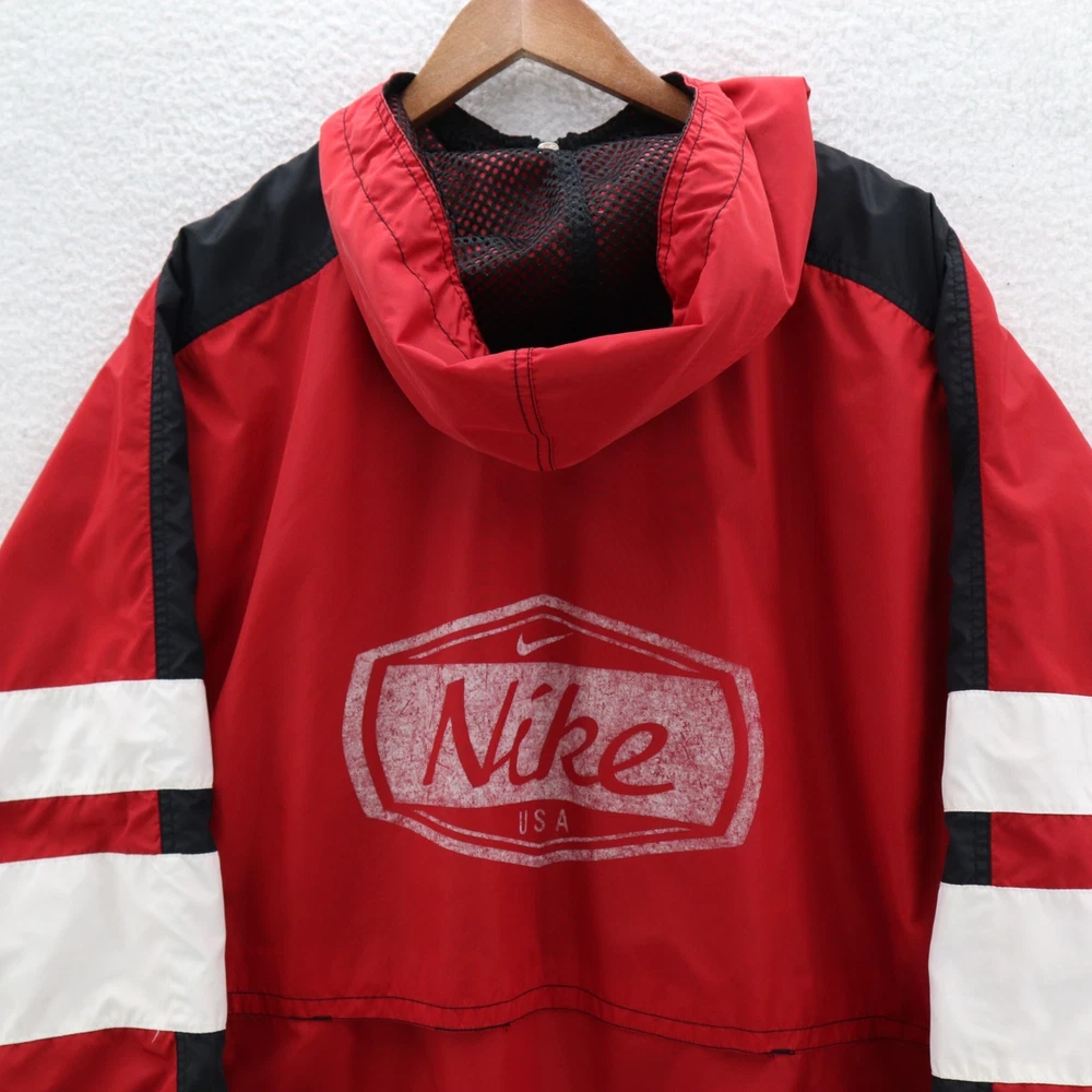 Vintage Nike Jacket Men's Red 90s White Tag Colorblock Swoosh Sports Streetwear This item is in pre-owned condition and therefore may show signs of previous use, such as small stains, holes, or other wear. Please view all of the items photos as any defects will be documented there. Sizing in the title and item specifics are based on what the tag says. Measurements can be seen in the photos.