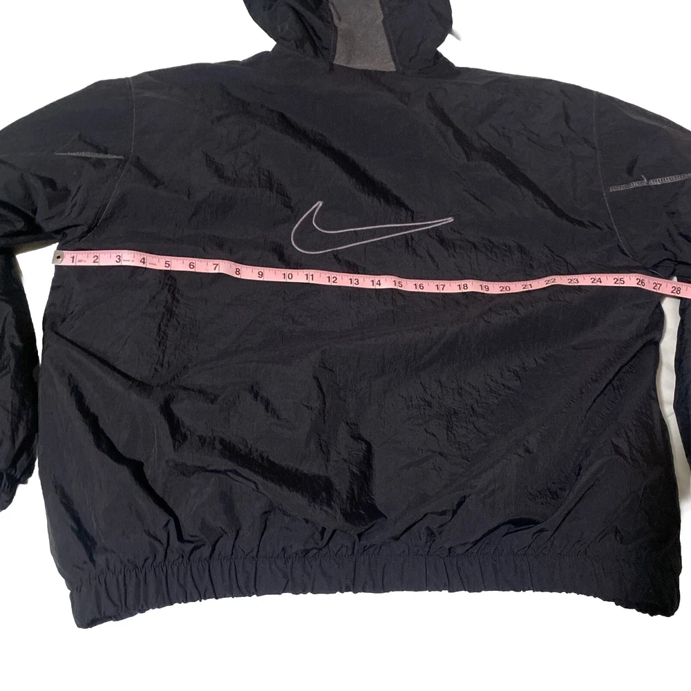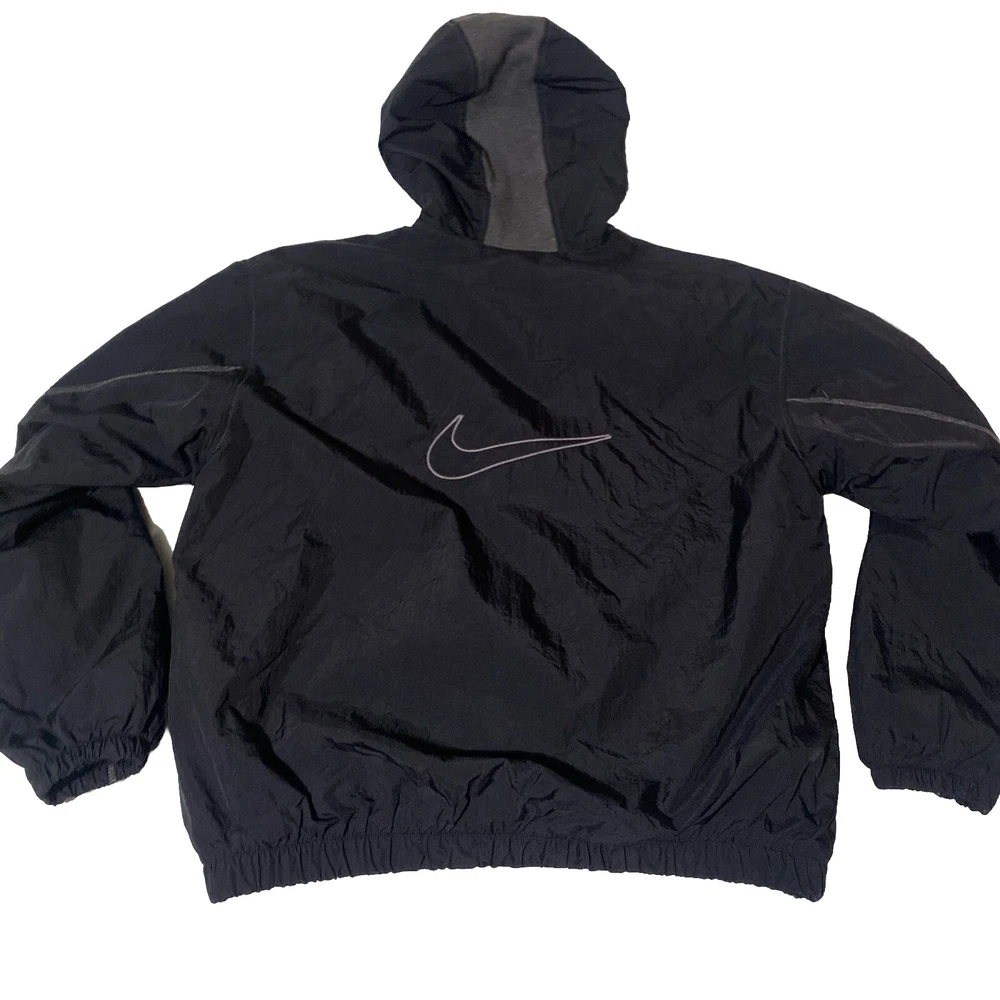 Vintage Nike jacket. Big swoosh on back, embroidered. Size XL. Black with gray accents. No holes or stains.
