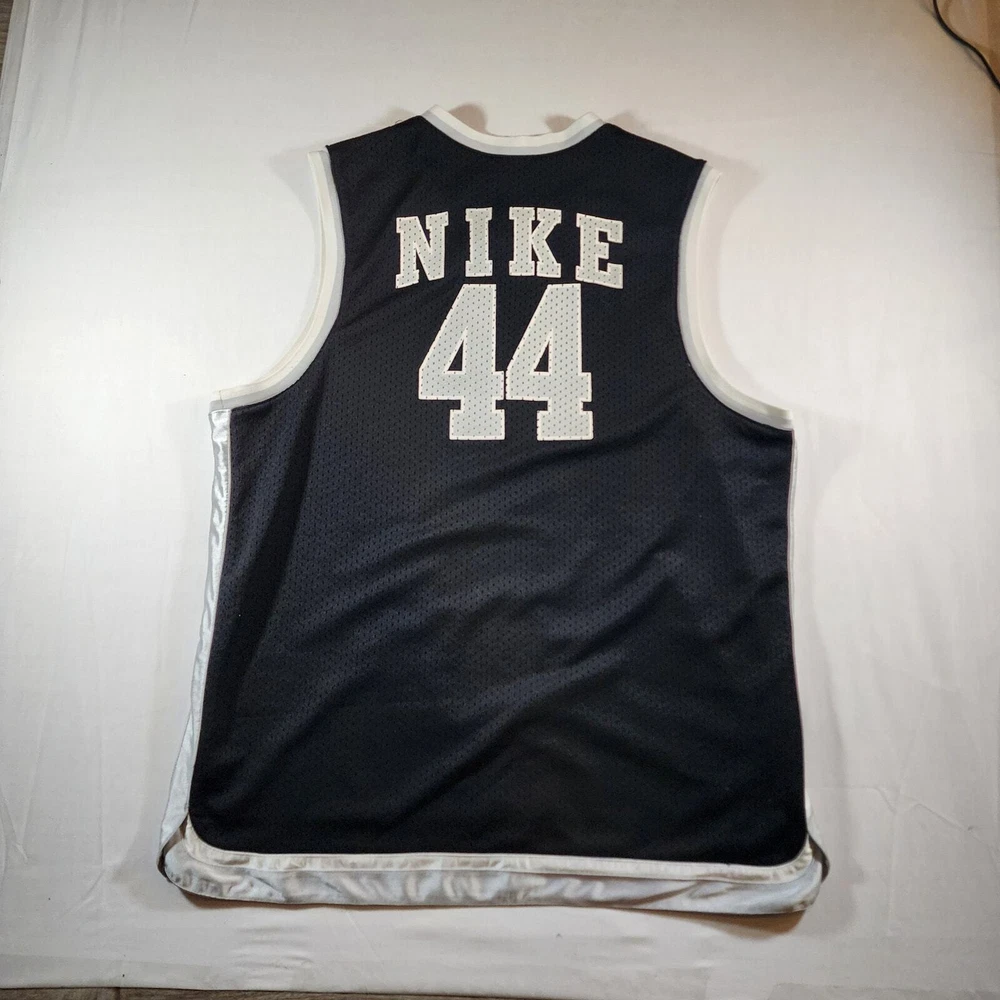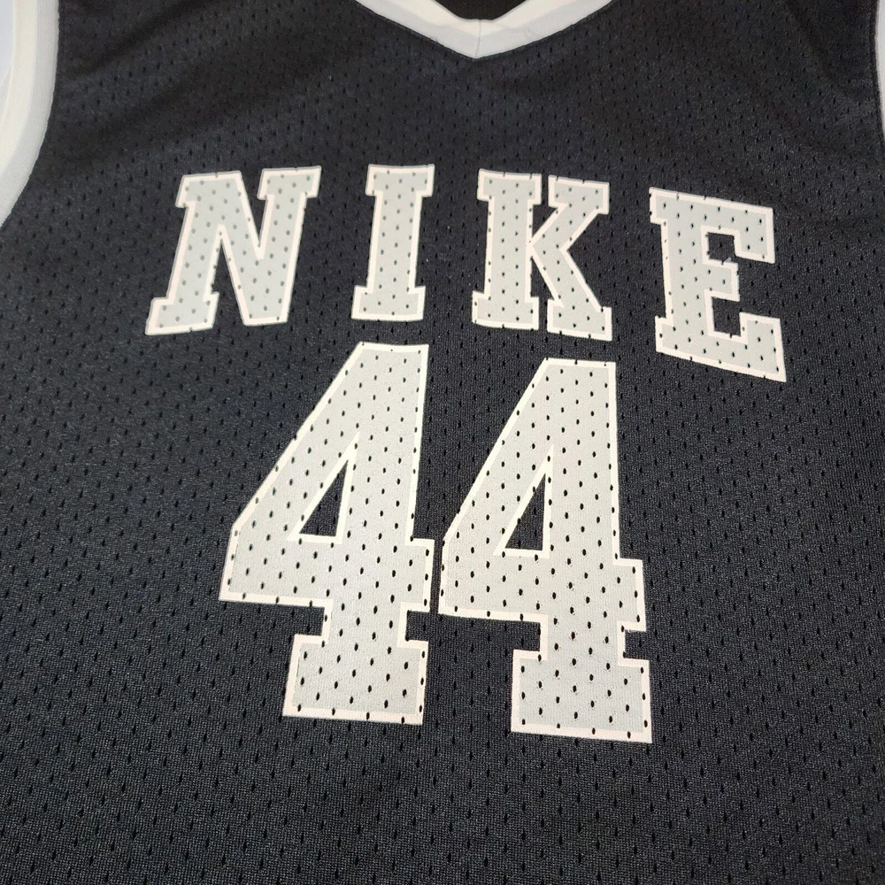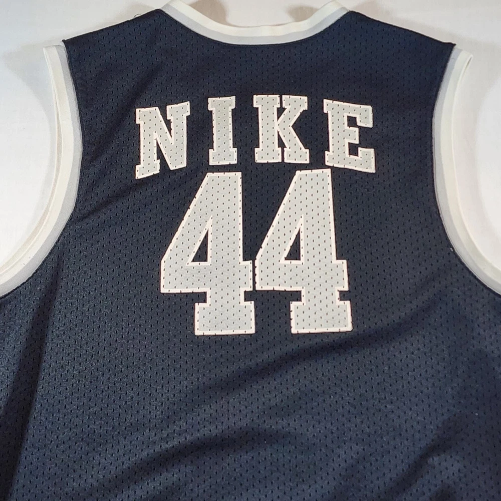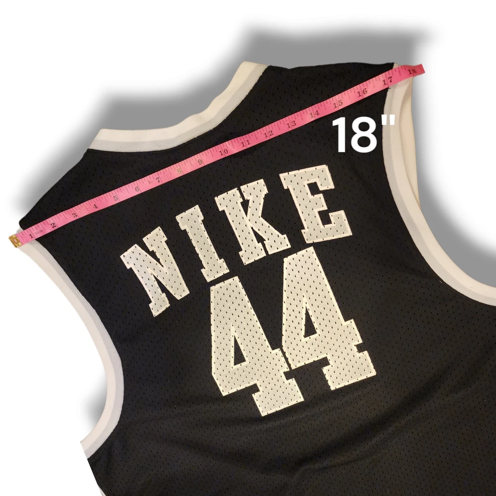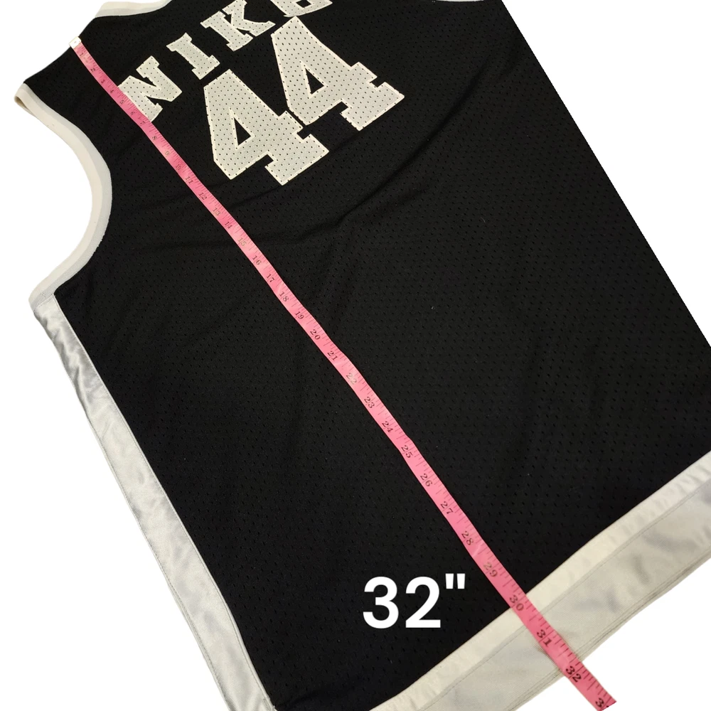 This is a black Nike basketball jersey with a white "NIKE" and "44" on the front. The jersey has a white v-neck collar and white trim around the arm holes and bottom hem. The jersey is size XL. The jersey is made of mesh material. It is a vintage style jersey and would be perfect for a basketball fan who wants to add a unique piece to their wardrobe. Condition: Great preowned condition As part of a limited run (3044 of 4000), its a rare find for collectors and fans alike. Please see the pictures for exact measurements and further details.