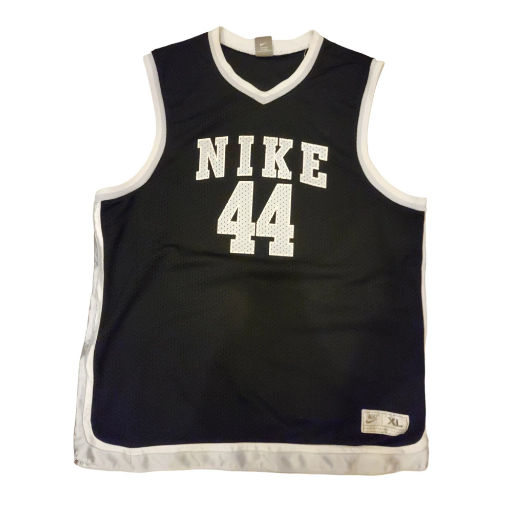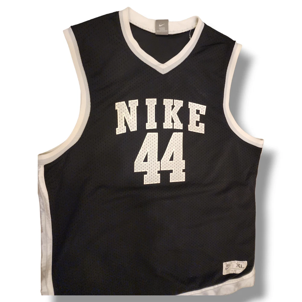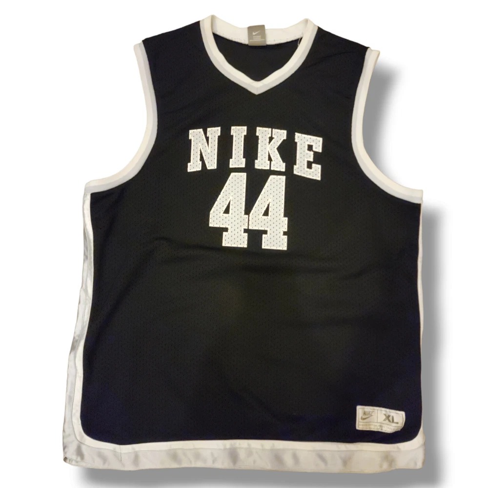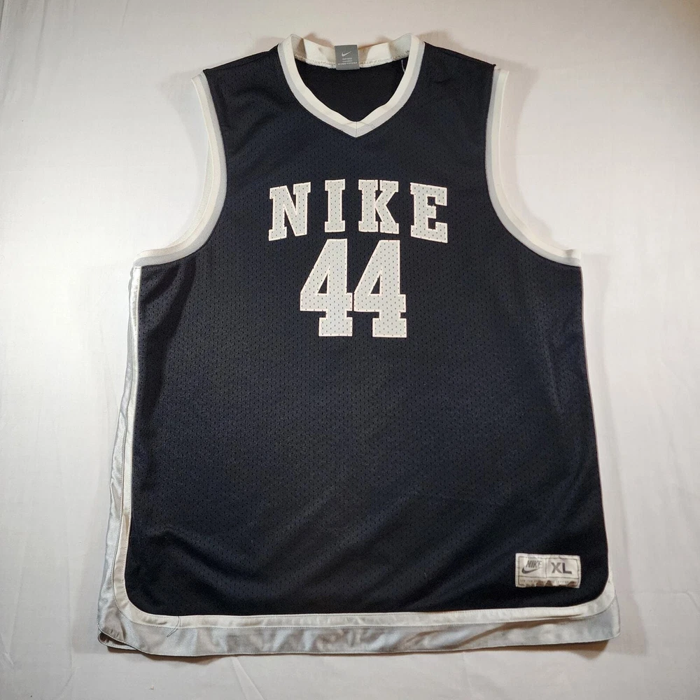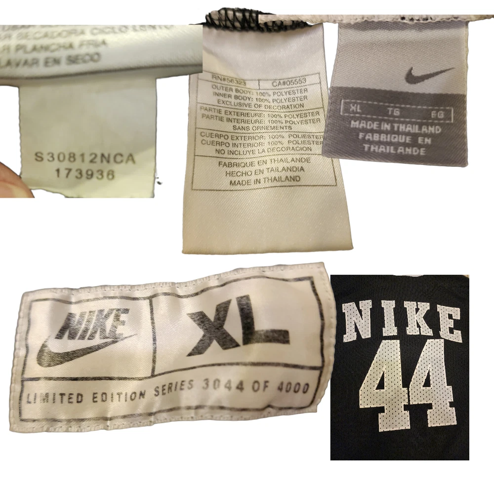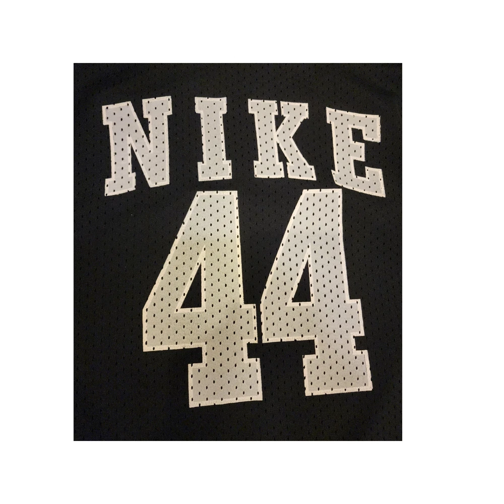 This is a black Nike basketball jersey with a white "NIKE" and "44" on the front. The jersey has a white v-neck collar and white trim around the arm holes and bottom hem. The jersey is size XL. The jersey is made of mesh material. It is a vintage style jersey and would be perfect for a basketball fan who wants to add a unique piece to their wardrobe. Condition: Great preowned condition As part of a limited run (3044 of 4000), its a rare find for collectors and fans alike. Please see the pictures for exact measurements and further details.